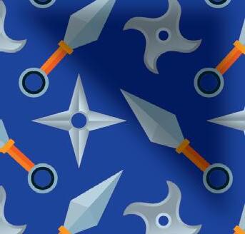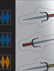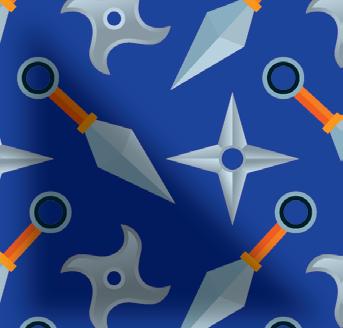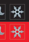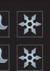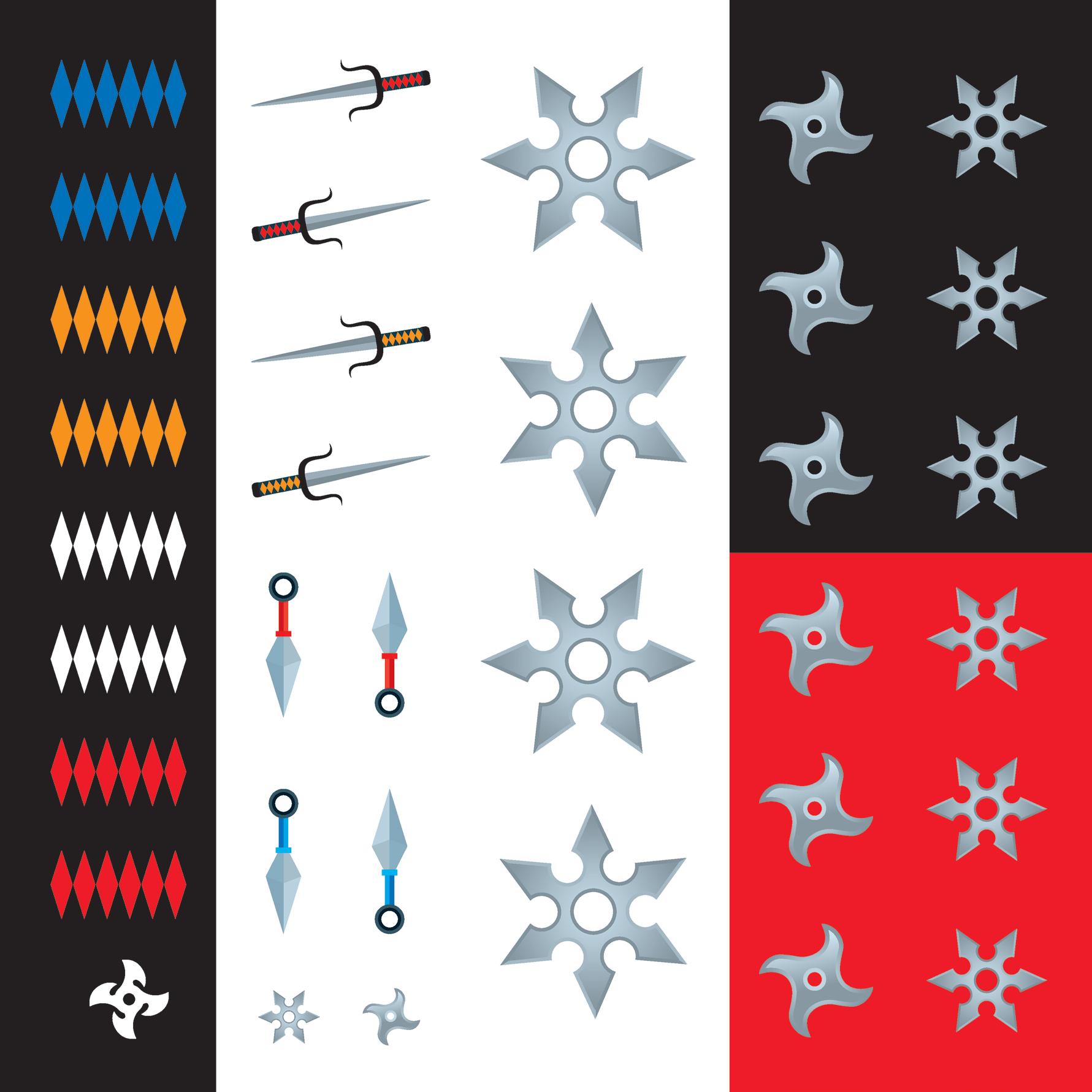 Ninja prêt à l'action, manchette, shurikens de différentes formes, sabre…