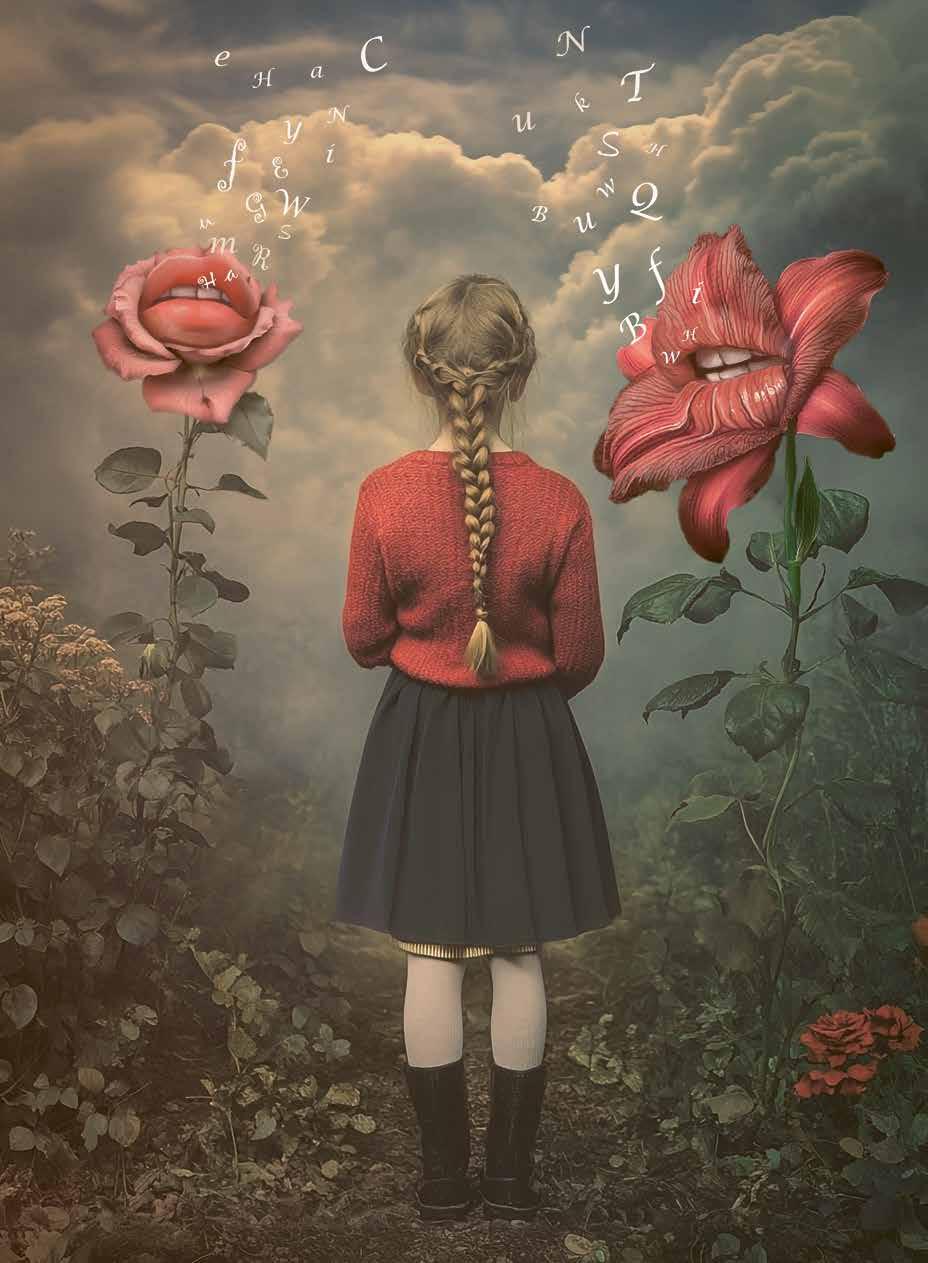 Mais un jour, la vieille dame vint voir Gerda coiffée d’un chapeau décoré d’une multitude de fleurs séchées. Parmi elles se trouvait une rose. Saisie sur l’instant,