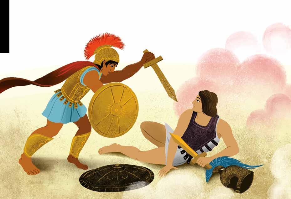 Mais Agamemnon n’écouta rien. Une voix dans ses rêves lui avait à nouveau promis la victoire… Le lendemain, l’armée grecque se mit en marche sur la plaine. En face, l’armée troyenne, prête à riposter. Au-dessus, Athéna et Apollon, lance et flèches à la main. Le carnage pouvait commencer.