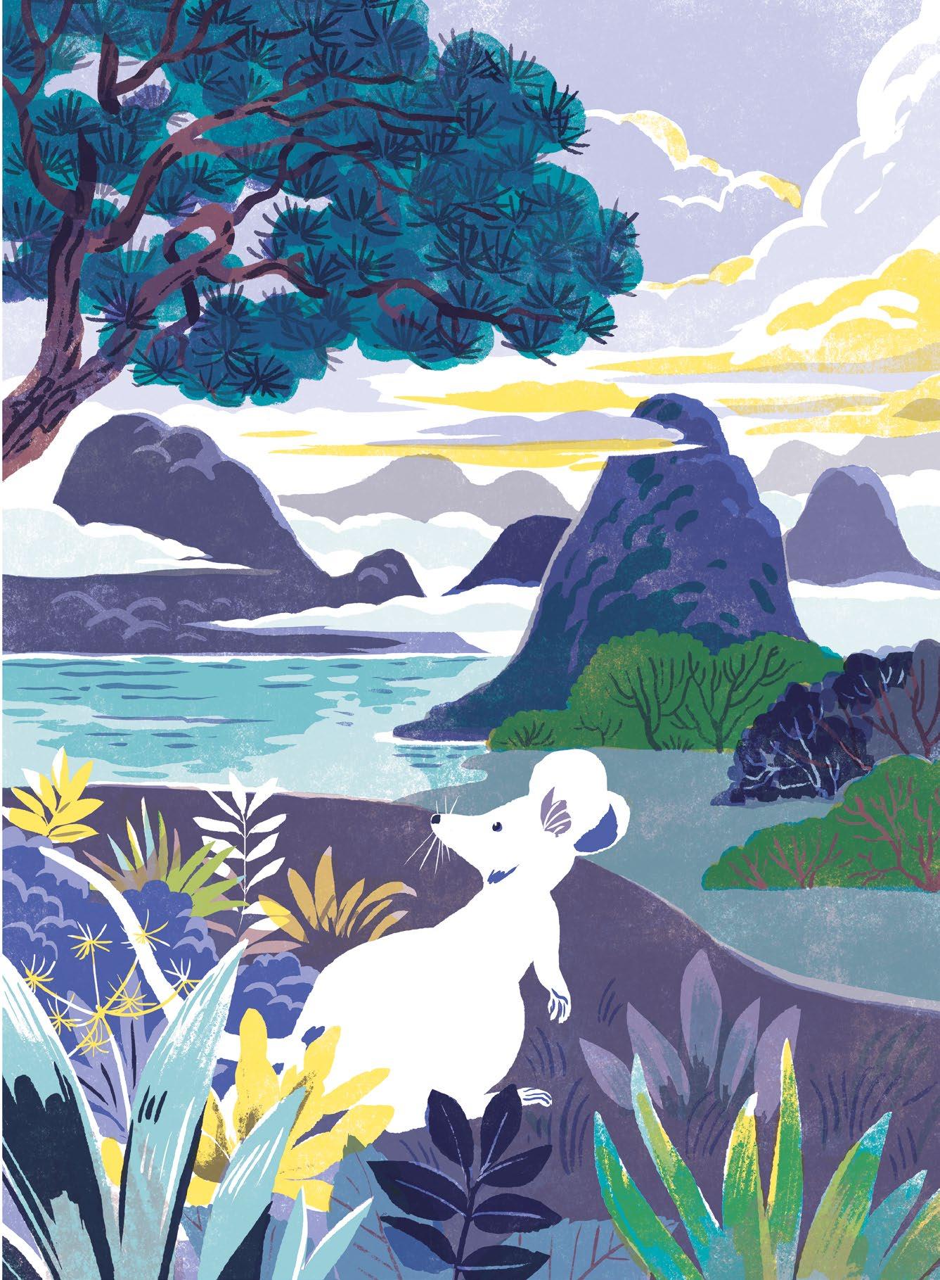 Mais alors que le buffle s’apprêtait à monter sur l’autre rive, le rat bondit à terre et franchit la Porte du Ciel en premier !