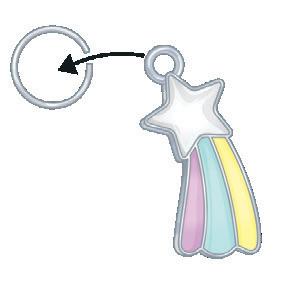 Ouvre un anneau, passe-le dans le trou du charm, referme l’anneau et glisse-le autour du tube.
