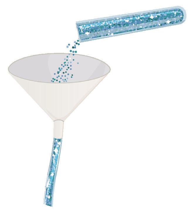 4 Choisis une couleur de paillettes et déverse-les dans l’entonnoir. Remplis le tube avec une ou plusieurs couleurs, à toi de choisir !