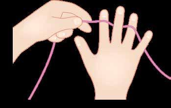 Lorsque je ramène une boucle de fil pour former une nouvelle maille (étapes 4 et 7), je m’aide de mon index gauche pour repousser et guider l’aiguille droite.