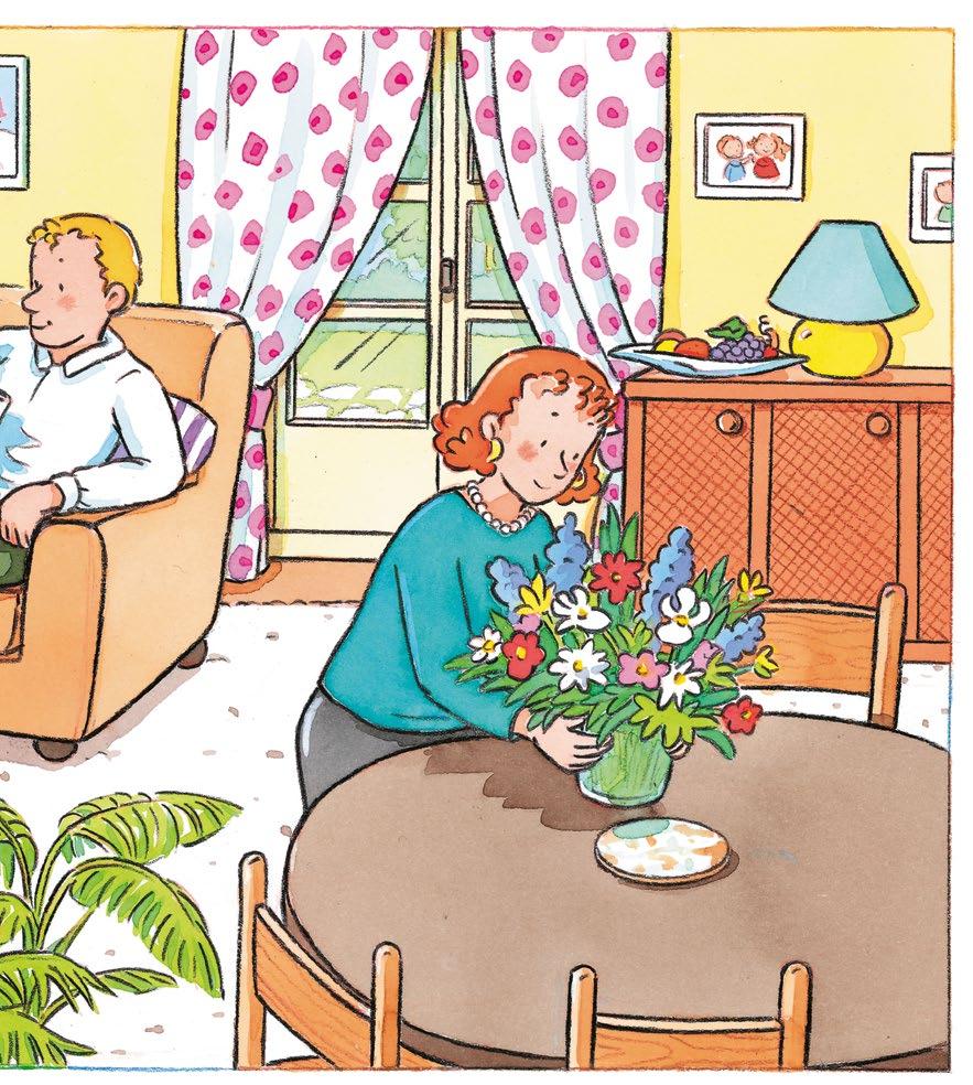 Dans le salon, on regarde la télévision ou un dessin animé...