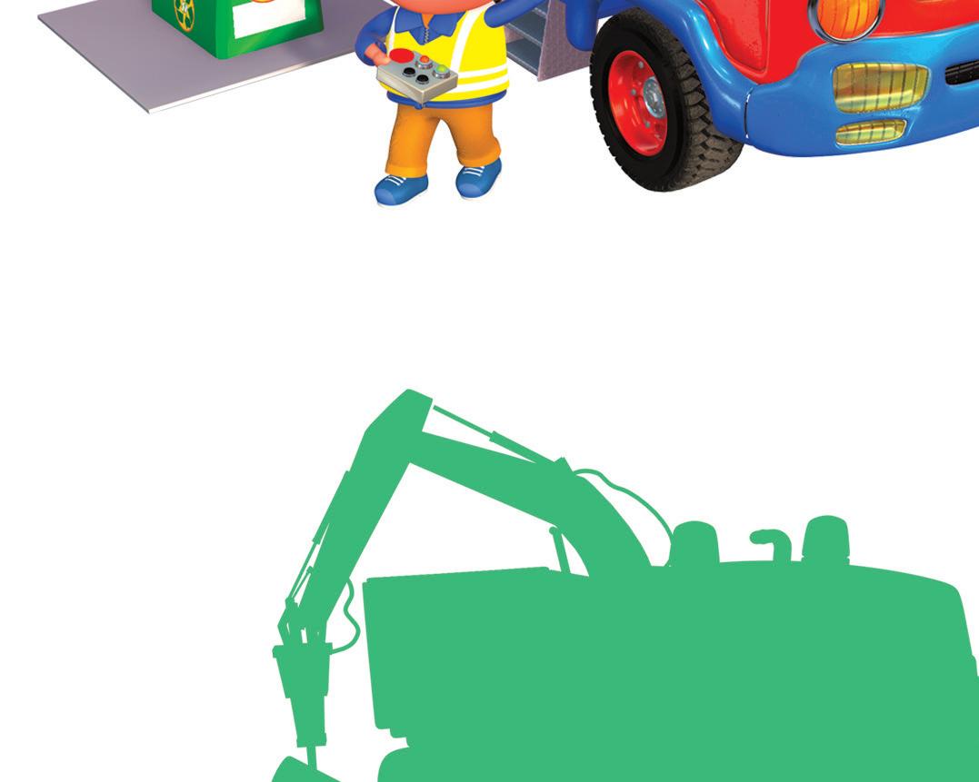 Pour actionner le bras de la grue, Manu doit appuyer sur un bouton. Il descend de son camion avec sa manette.