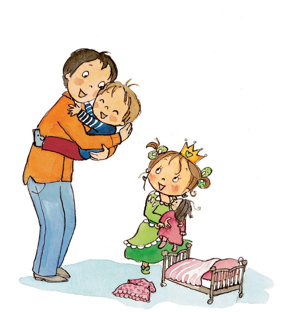 Zoé ne veut pas que son cousin Thomas monte sur les genoux de Papa :