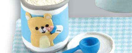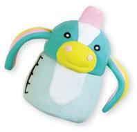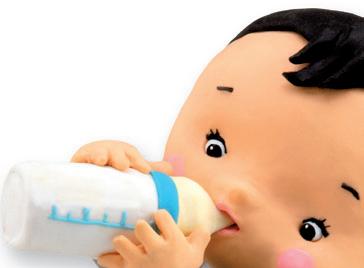 Bébé a grandi. Il prend son biberon de lait tout seul.