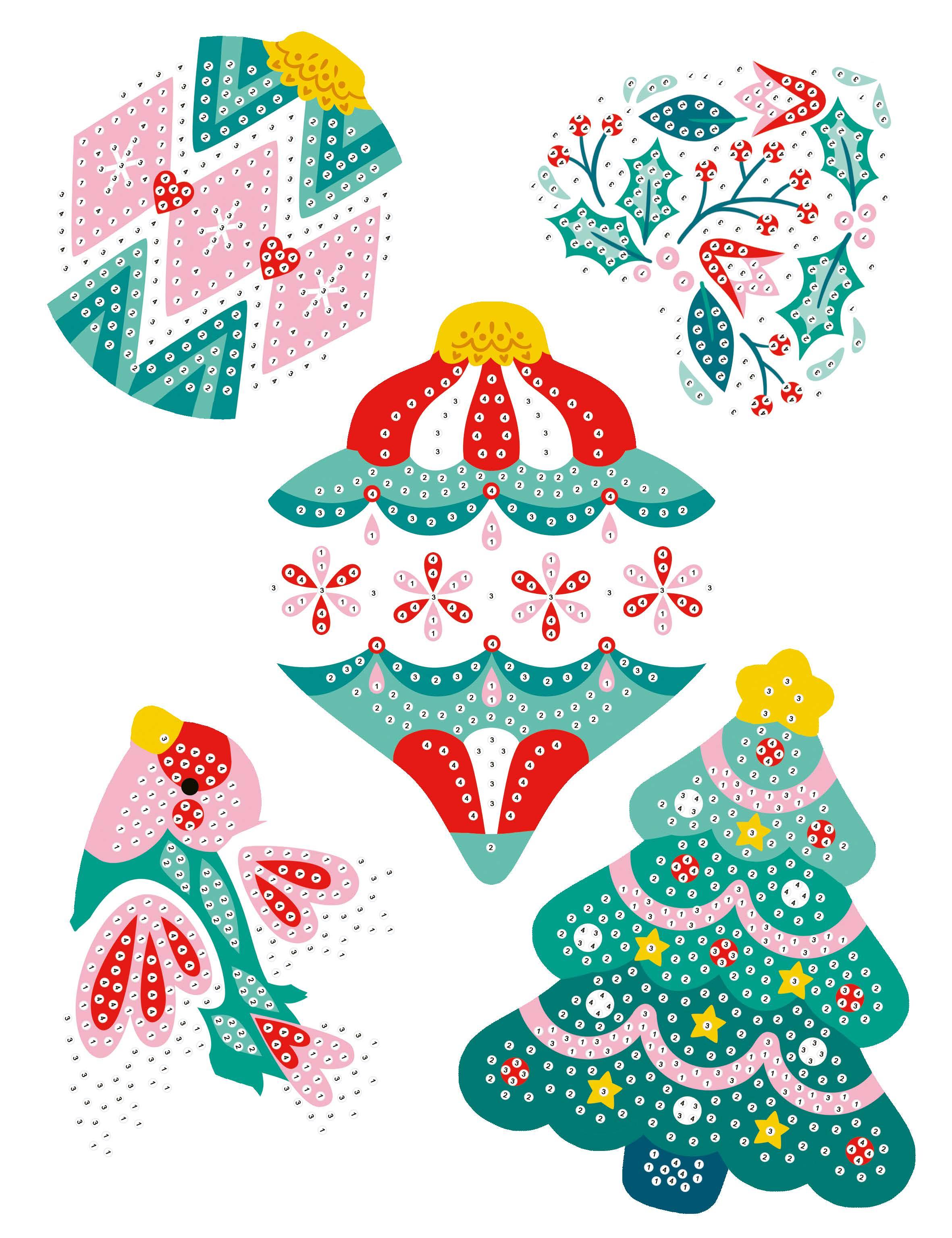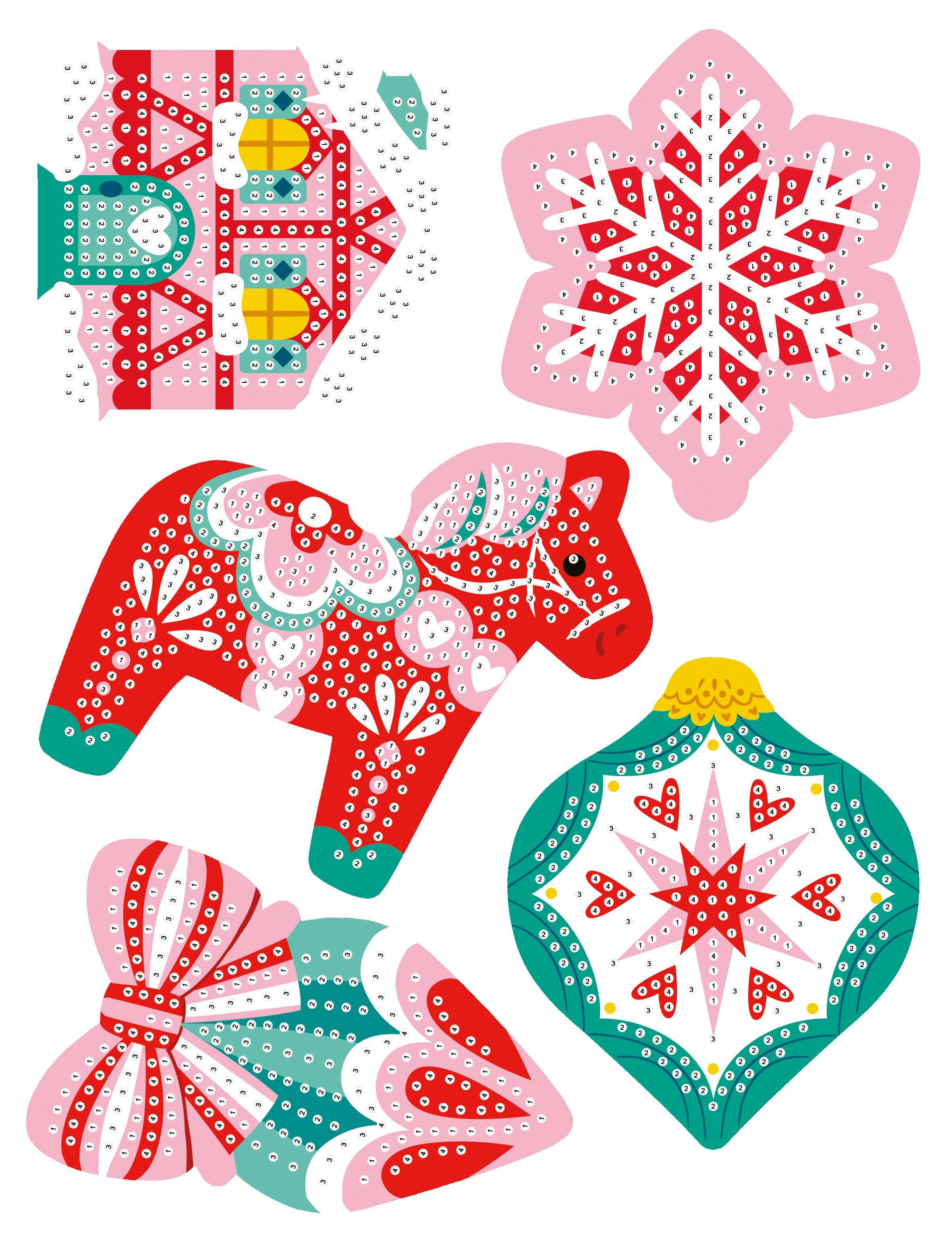 4 Dépose les pixel strass et les mini cristaux sur les zones de colle en respectant le code couleur.