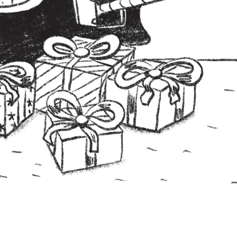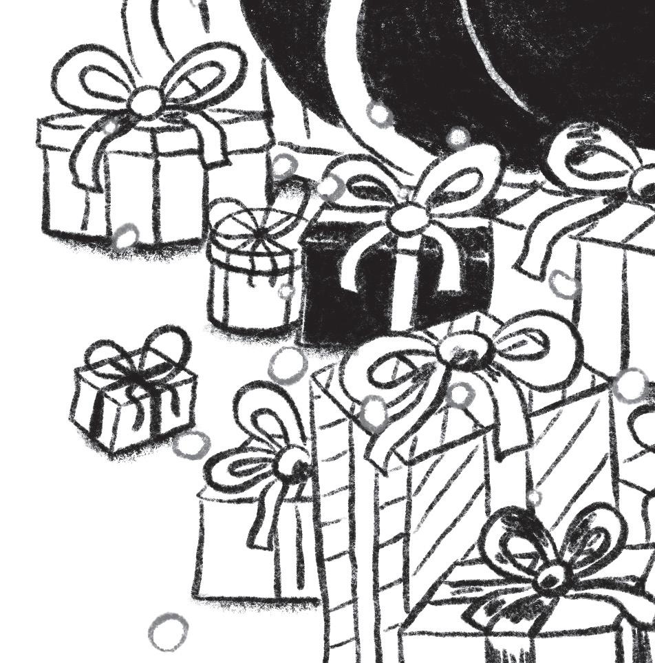 Comme chaque année depuis… depuis si longtemps que plus personne ne sait depuis quand, une montagne de paquets cadeaux attend à côté d’un traîneau de couleur rouge et or. Il y en a de toutes les tailles, des gros et des petits, des très très lourds et des très très légers, certains sont emballés dans de jolis papiers colorés, d’autres dans des pochettes discrètes. Il y a des dizaines, des centaines, des milliers, des millions, des dizaines de centaines de millions de paquets, un pour chaque enfant de la terre, ce qui fait tout de même beaucoup de paquets.