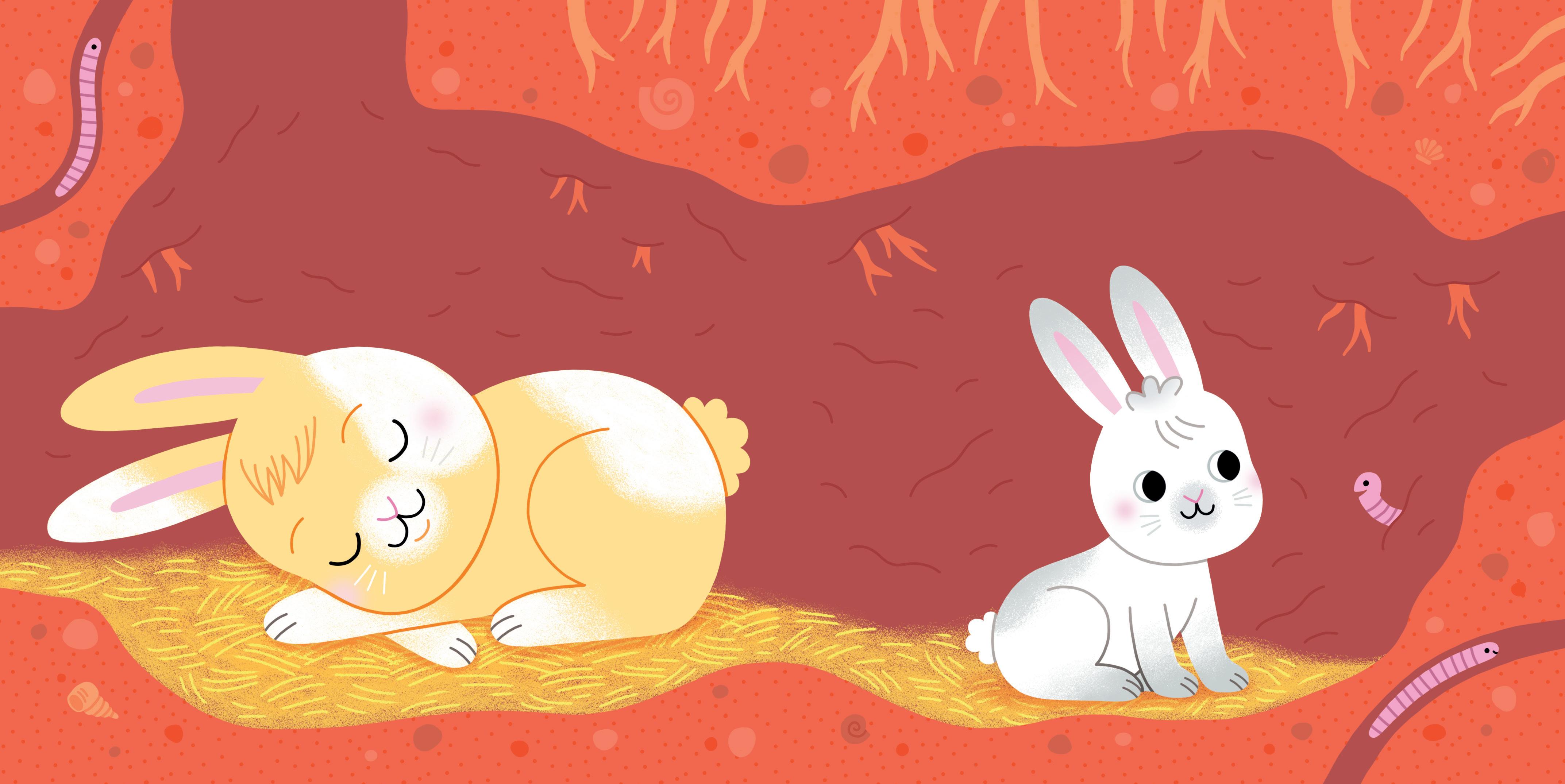 Petit lapin est né bien au chaud dans un terrier.