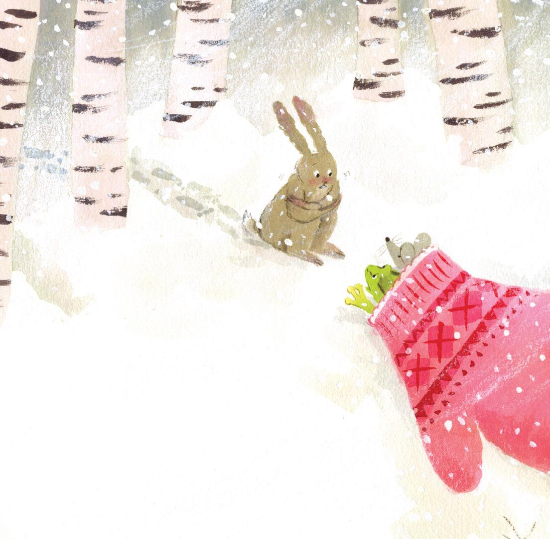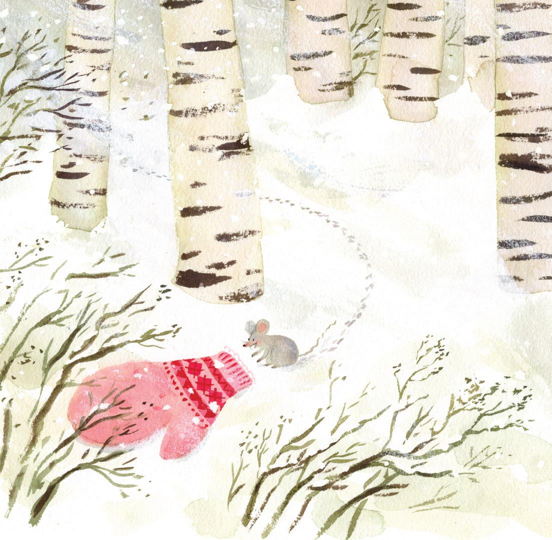 Or, la veille de Noël, une petite souris qui trottinait à la recherche d’un abri fit une formidable découverte : une moufle perdue dans la neige !