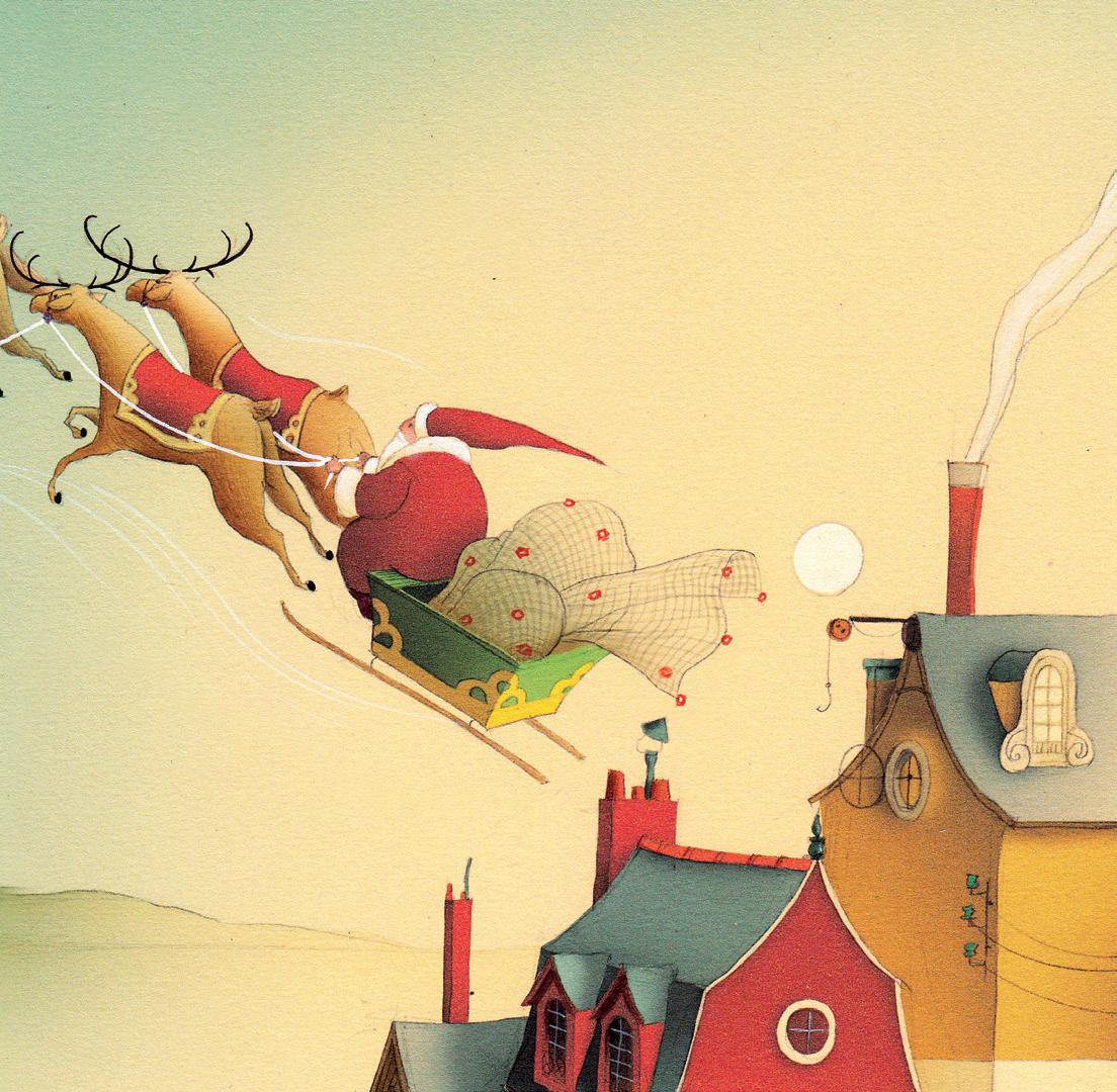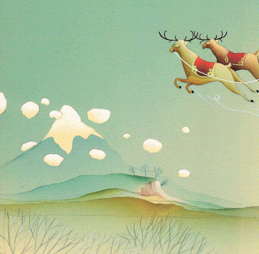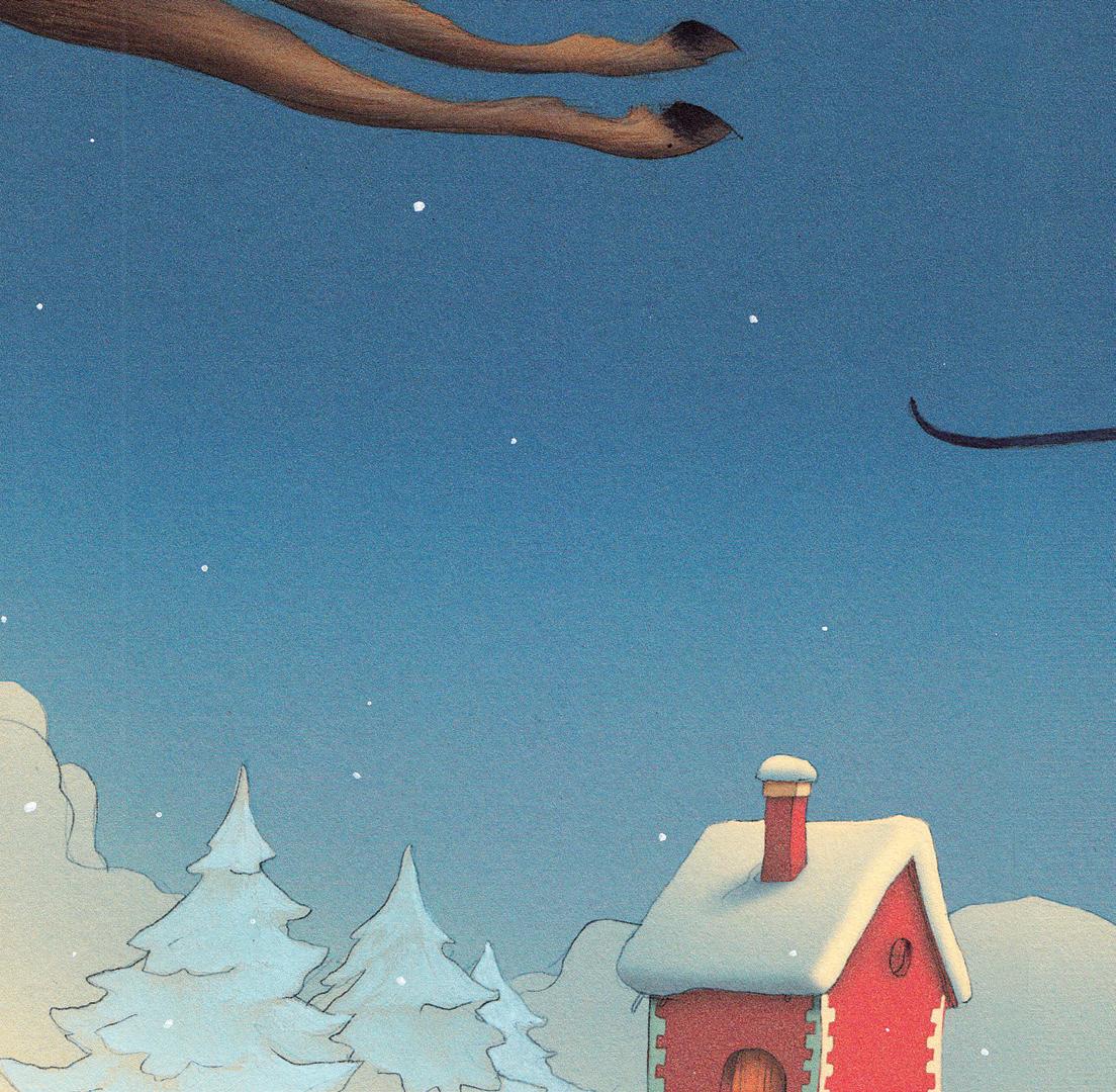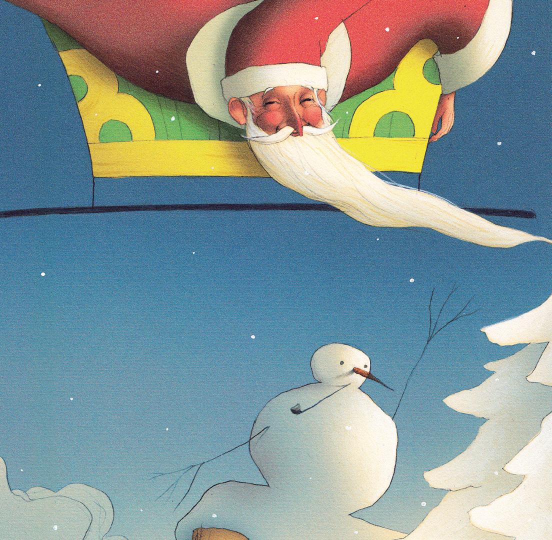 Mais son regard est attiré vers le ciel : le vieil homme s’envole sur son traîneau, un grand sac sur le dos !
