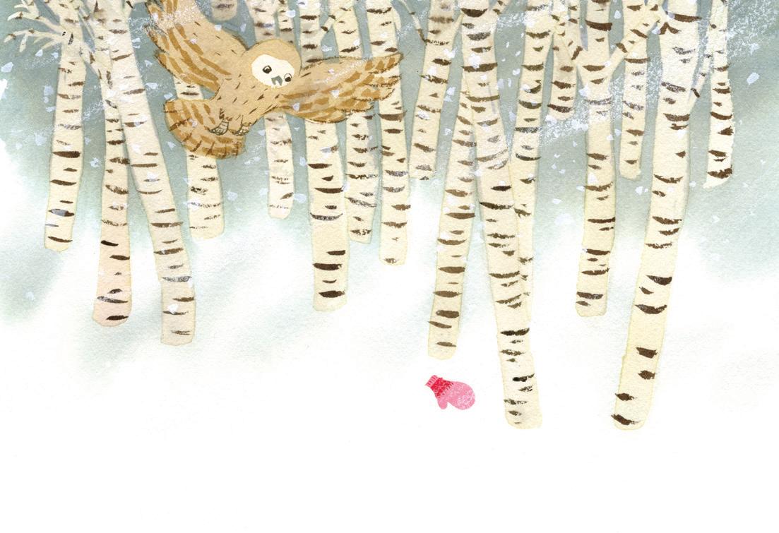 Une chouette qui voletait alentour vit alors la moufle dans la neige.