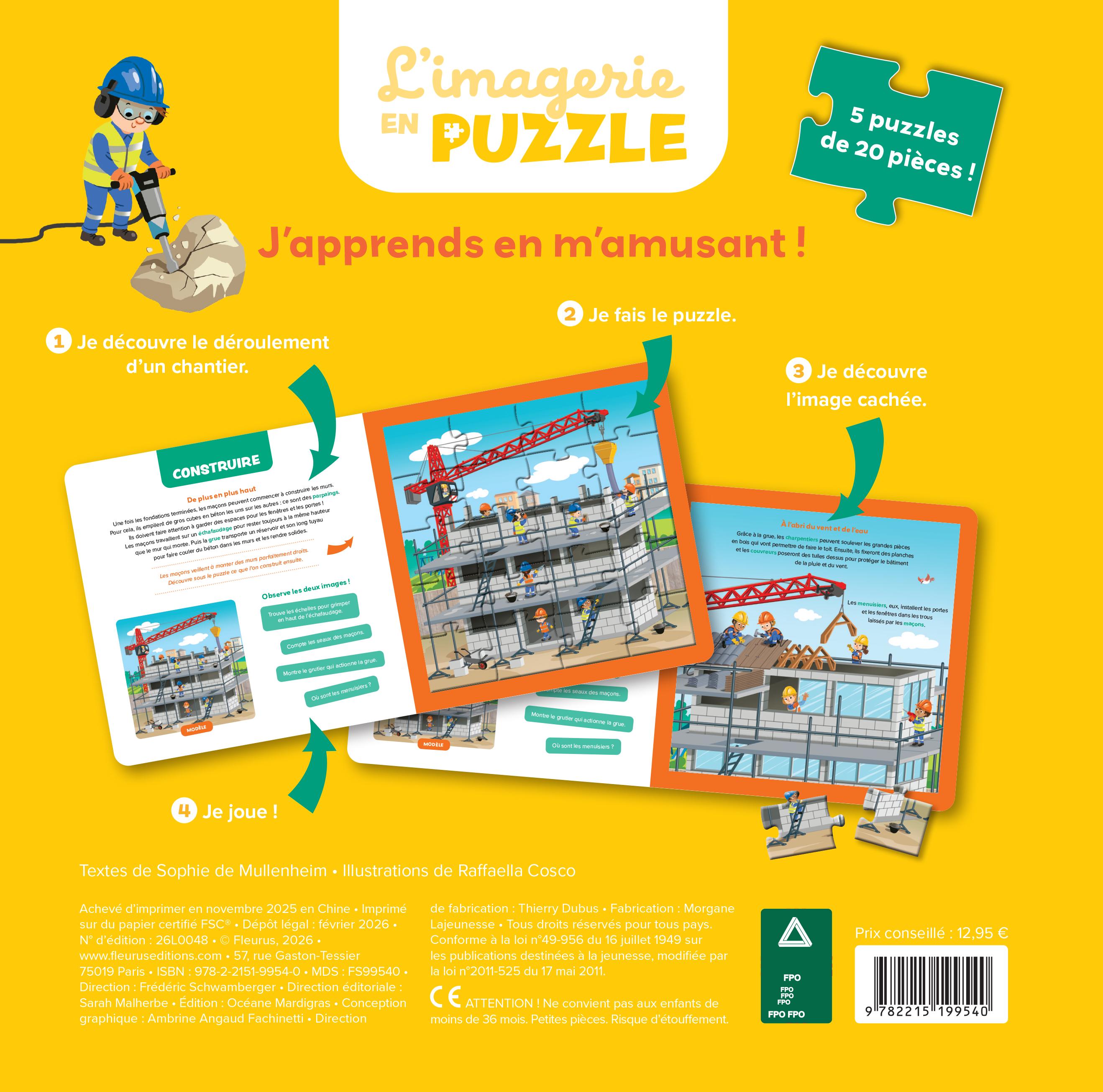Avec les gros engins de chantier, il y a des risques d’accident. Découvre sous le puzzle comment les ouvriers se protègent.