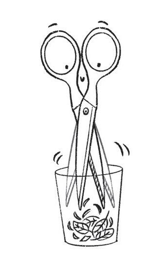 Passe le bouquet d’herbes sous un filet d’eau. Secoue-le dans l’évier pour l’égoutter, puis sèche-le avec du papier absorbant. Tu peux couper tes herbes en petits bouts avec une paire de ciseaux, mais si tu veux quelque chose de plus fin, utilise un verre : mets les feuilles au fond du verre et coupe-les en donnant plein de petits coups de ciseaux.