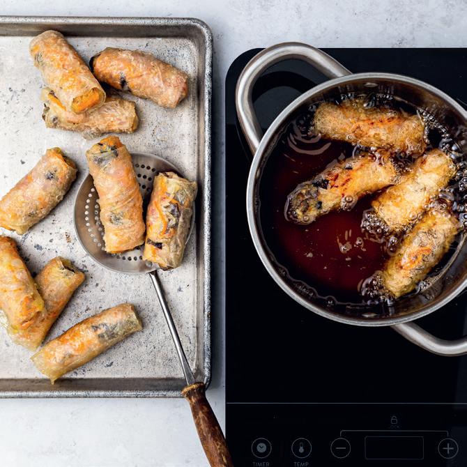 • Première cuisson : verse délicatement les nems (par 6)