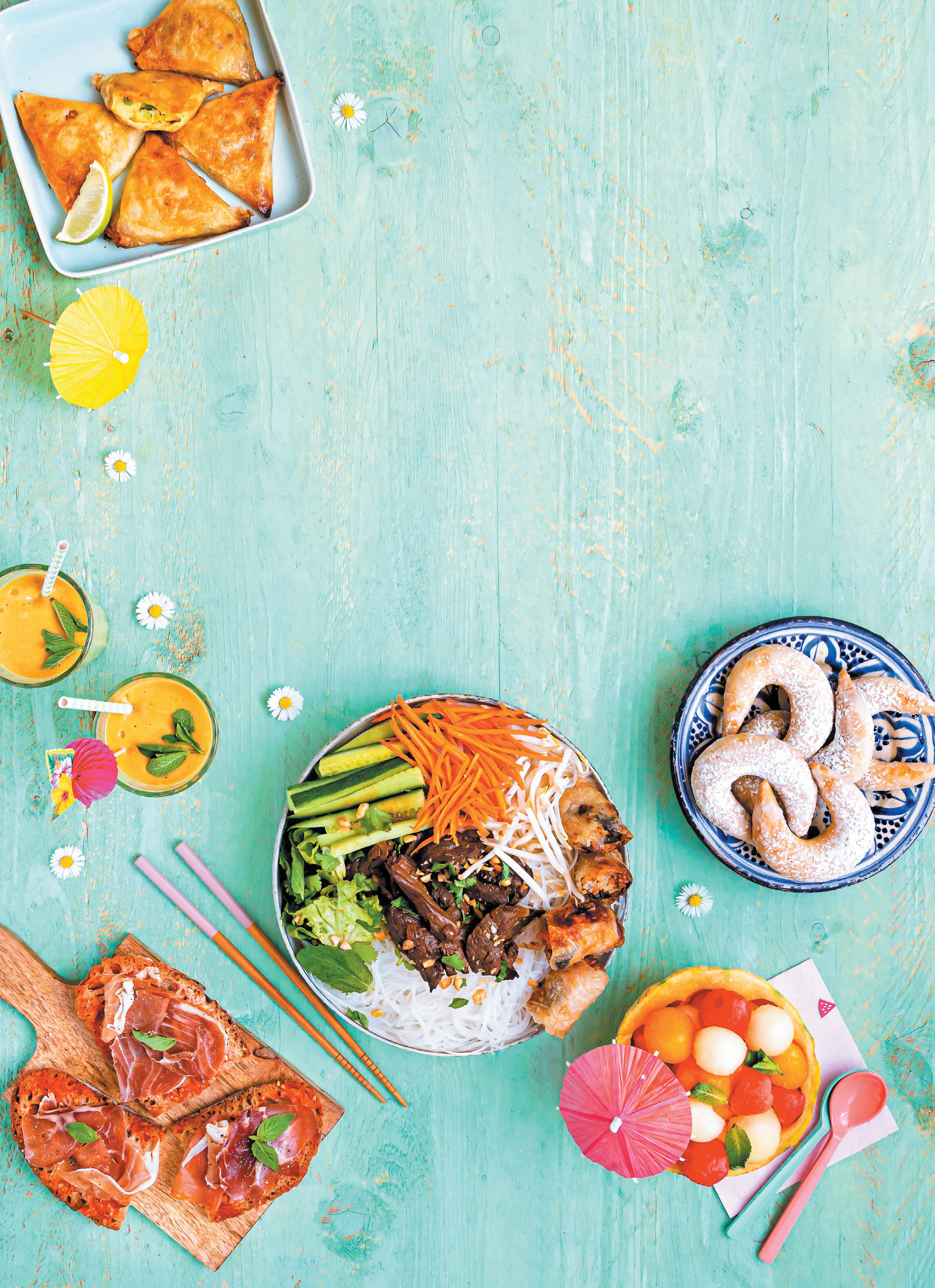 • •Des repas exotiques typiques pour faire voyager les papilles : vietnamien, anglais, espagnol, indien, marocain…