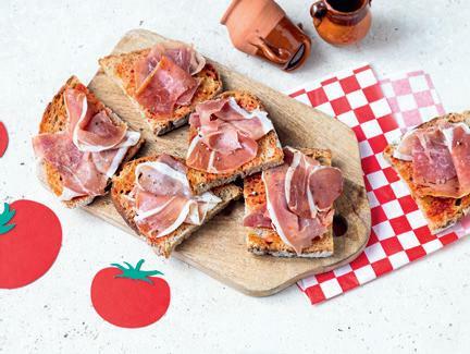 Pan con tomate y jamón Salade de pois chiches au thon Tortilla
