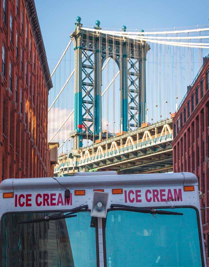 Il existe une cuisine urbaine et rapide que l’on découvre lorsque l’on passe la porte d’un Deli’s à New-York . Ces petits « bistrots » du coin de la rue proposent un bagel, un sandwich, une soupe, un todays’ special (le plat du jour) ou une salade à déguster sur le pouce . Autre institution à New-York qui voient arriver les buppies, guppies et autres yipsters à l’heure du déjeuner : les vendeurs ambulants munis de leur « cart », leur chariot métallique, qui vous proposent de dévorer un pretzel, un hot-dogs ou une glace .