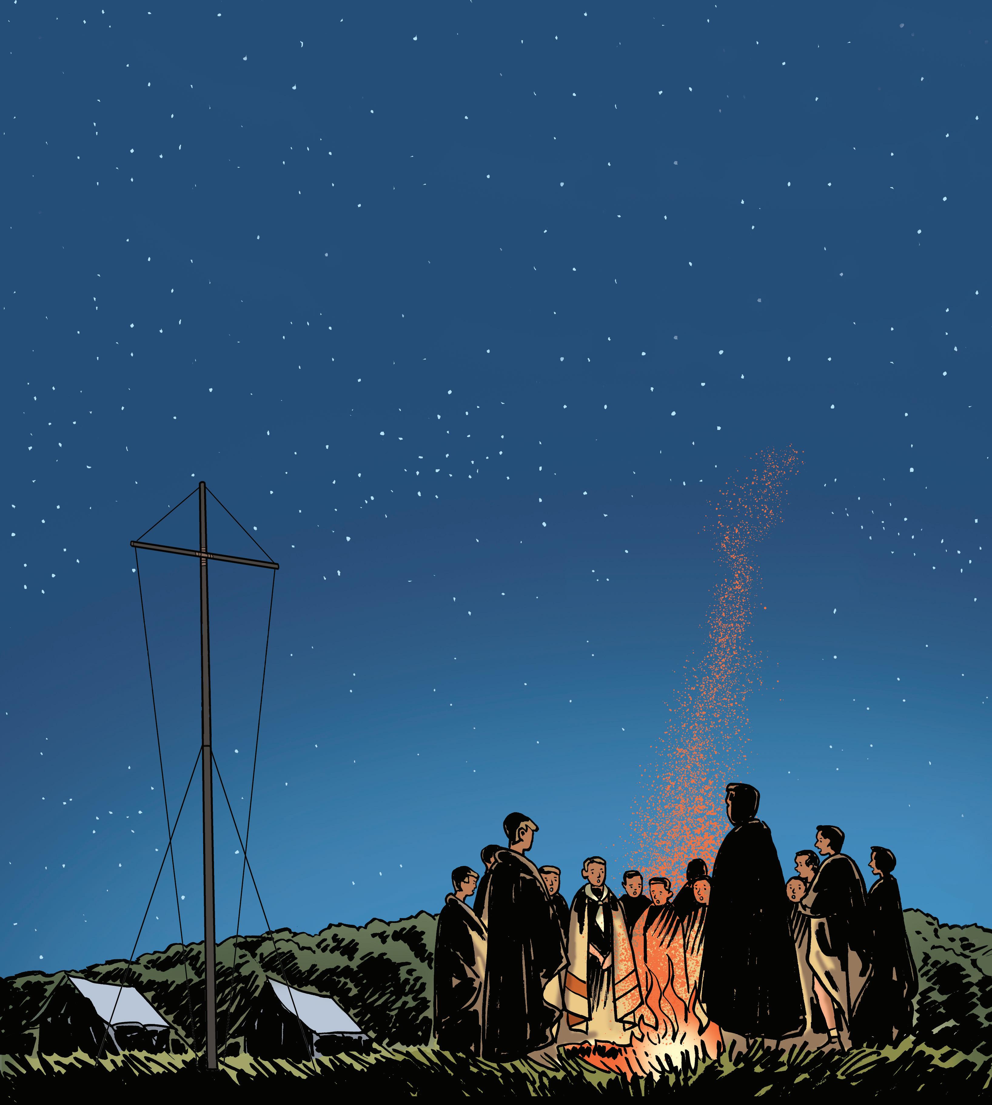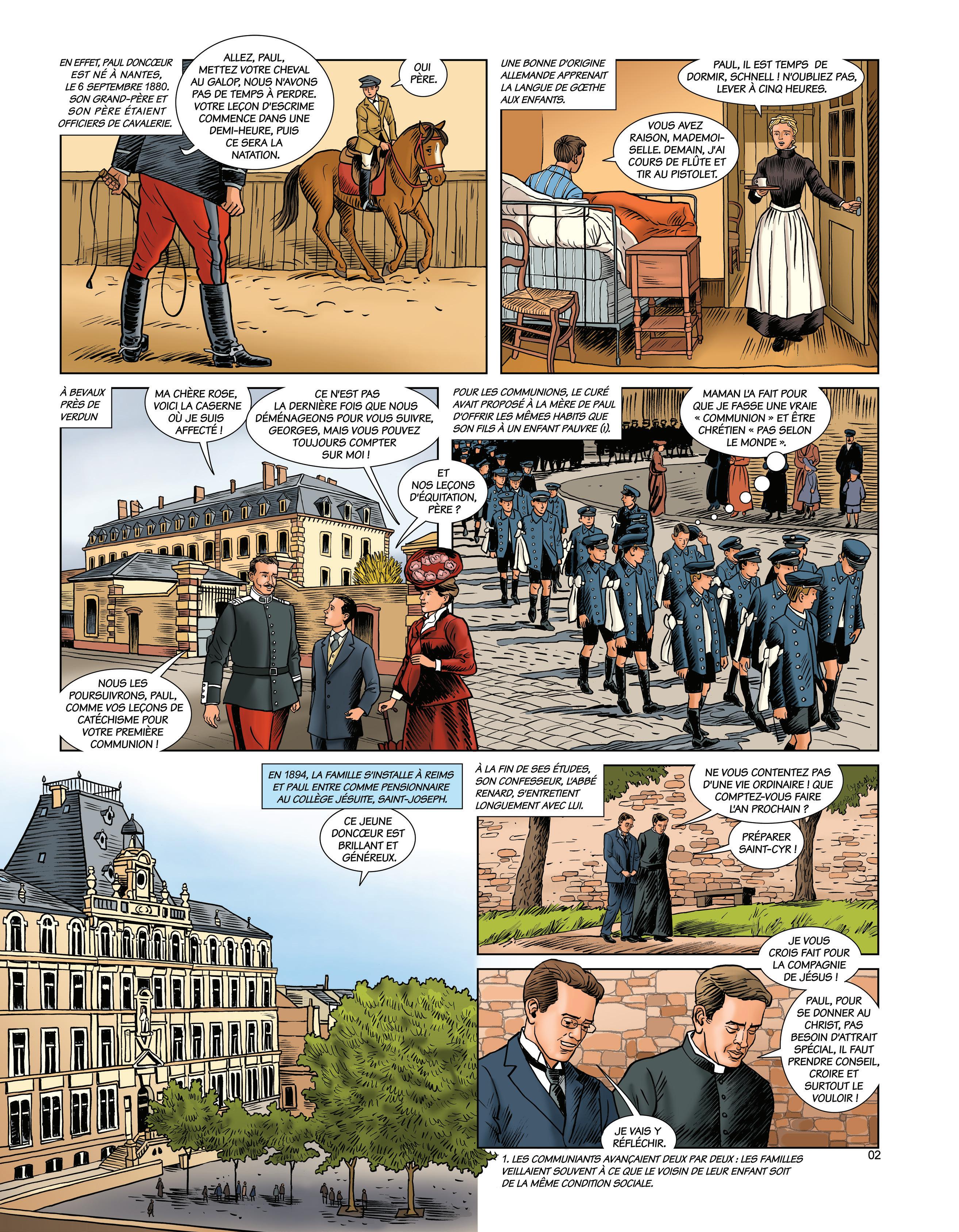 Cette biographie croisée de deux jésuites français, engagés corps et âme au service de la France et de sa jeunesse, s’appuie sur les sources les plus fiables et les plus vérifiées de l’histoire du scoutisme au XXe siècle, avec bien entendu les simplifications qu’impose l’exercice de la narration en bande dessinée. Toutefois, la liberté des auteurs les a conduits à glisser dans ces pages une rencontre entre Jacques Sevin et Paul Doncœur aux abords de la cathédrale de Beauvais, après-guerre, alors qu’ils séjournaient tous deux dans l’Oise. Rencontre non documentée, mais plausible, et qui s’imposait pour les besoins du récit. Les lecteurs voudront bien accepter ce clin d’œil. Et qui sait, après tout, si cette belle entrevue n’a pas eu lieu ? Le temps de la lecture d’un album, laissons l’hypothèse prendre forme…