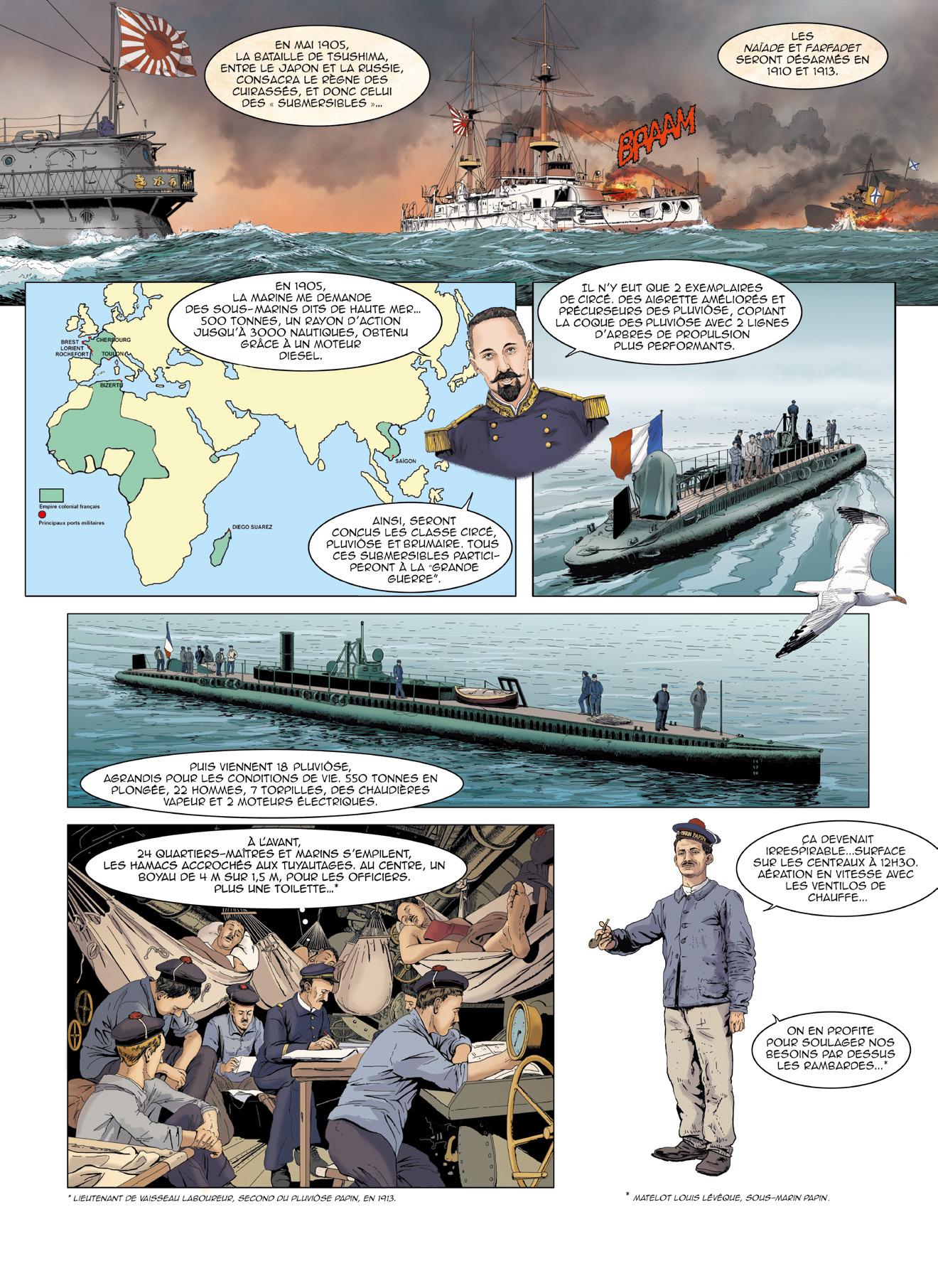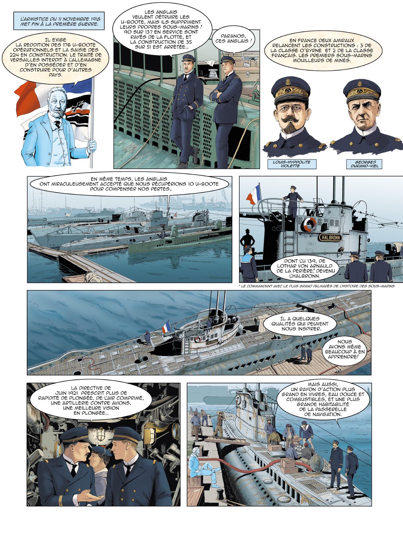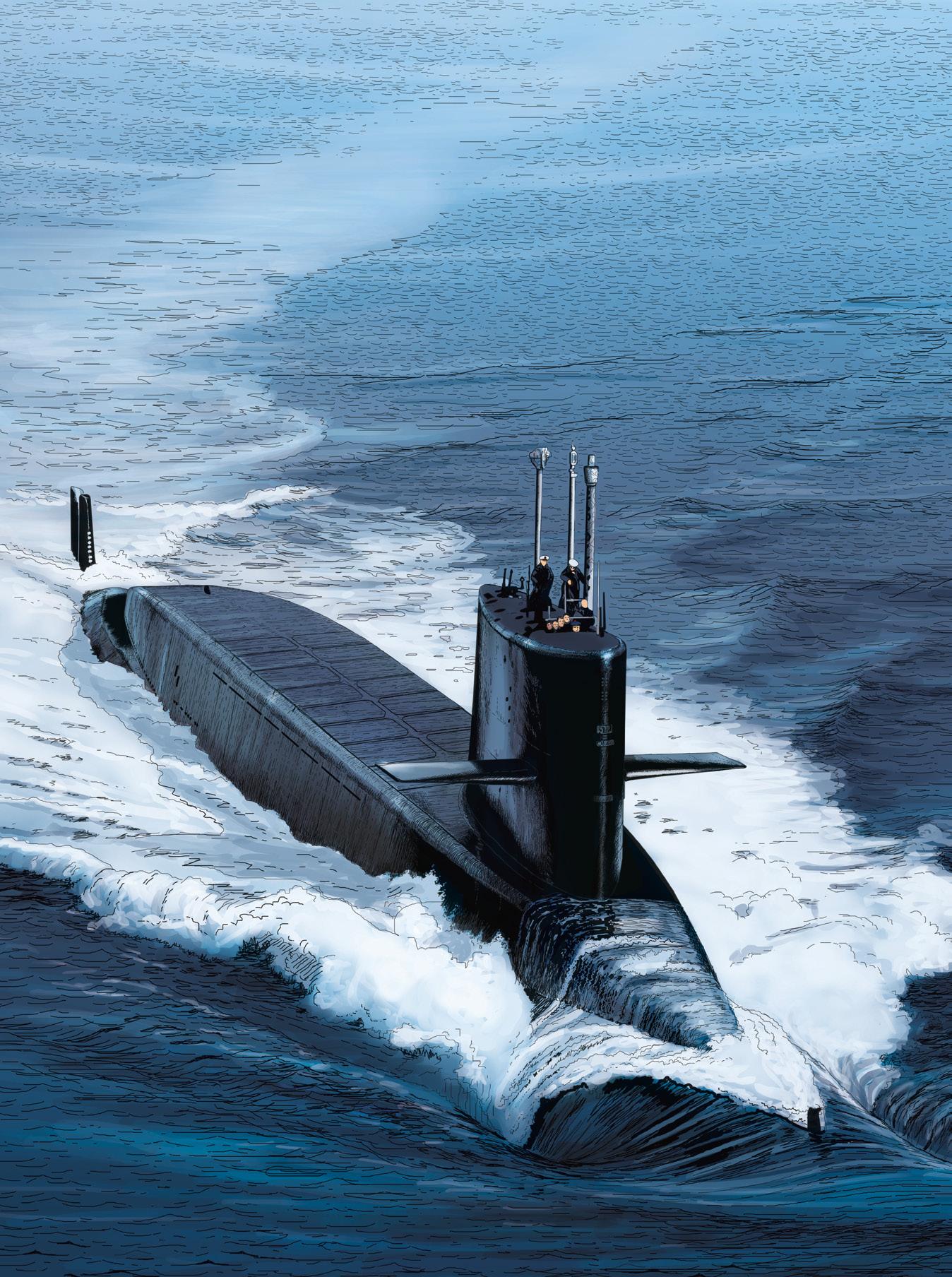 L’éditeur souhaite remercier les contributeurs bénévoles qui ont précieusement aidé à la réalisation de cette bande dessinée : l’amiral (2S) Bernard Rogel, auteur du livre Un marin à l’Élysée (Tallandier, 2023), ainsi que son éditeur, pour leur aimable autorisation d’adapter des passages de cet ouvrage ; le vice-amiral d’escadre Jacques Fayard, commandant la FOST et les forces sous-marines au lancement de ce projet ; le vice-amiral d’escadre (2S) Eric Scherer pour la vérification des uniformes représentés ; le contre-amiral (2S) Dominique Salles, président de l’AGASM ; le capitaine de vaisseau Vincent Vacqué, initiateur de ce projet éditorial, pour son efficace et aimable collaboration ; M. Bernard Micaelli, architecte pour la France du NSRS et expert en sauvetage sous-marin, pour ses conseils ; M. Hervé Glandais, Directeur du programme Barracuda chez Naval Group, pour son aimable hospitalité ; M. Victor Bouissou-Thomas, Directeur de la communication Sous-Marins chez Naval Group, pour son soutien continu.