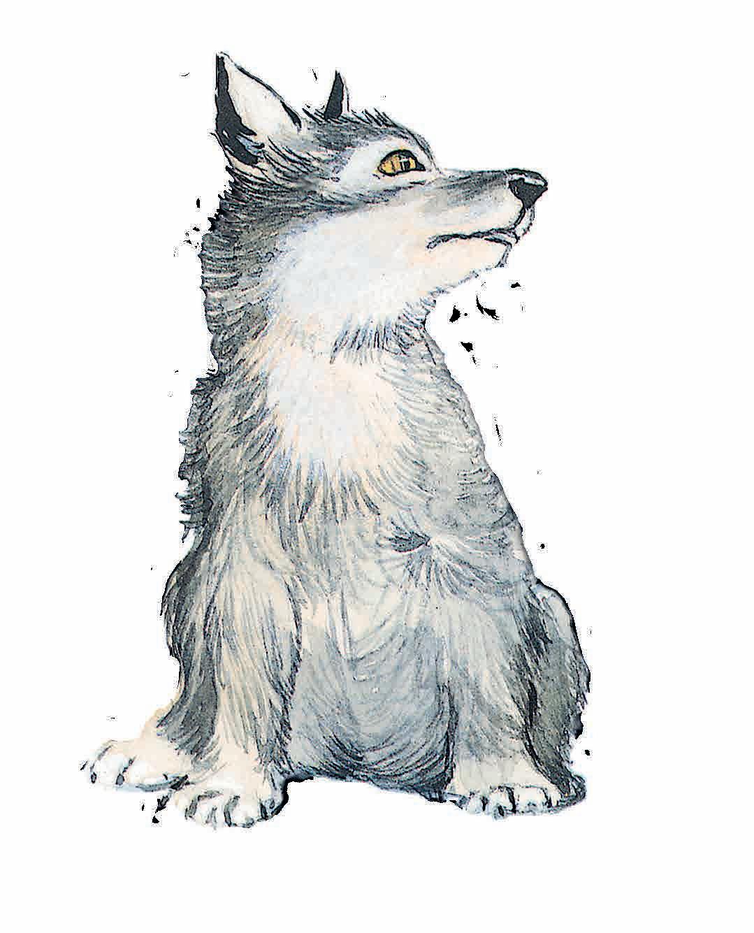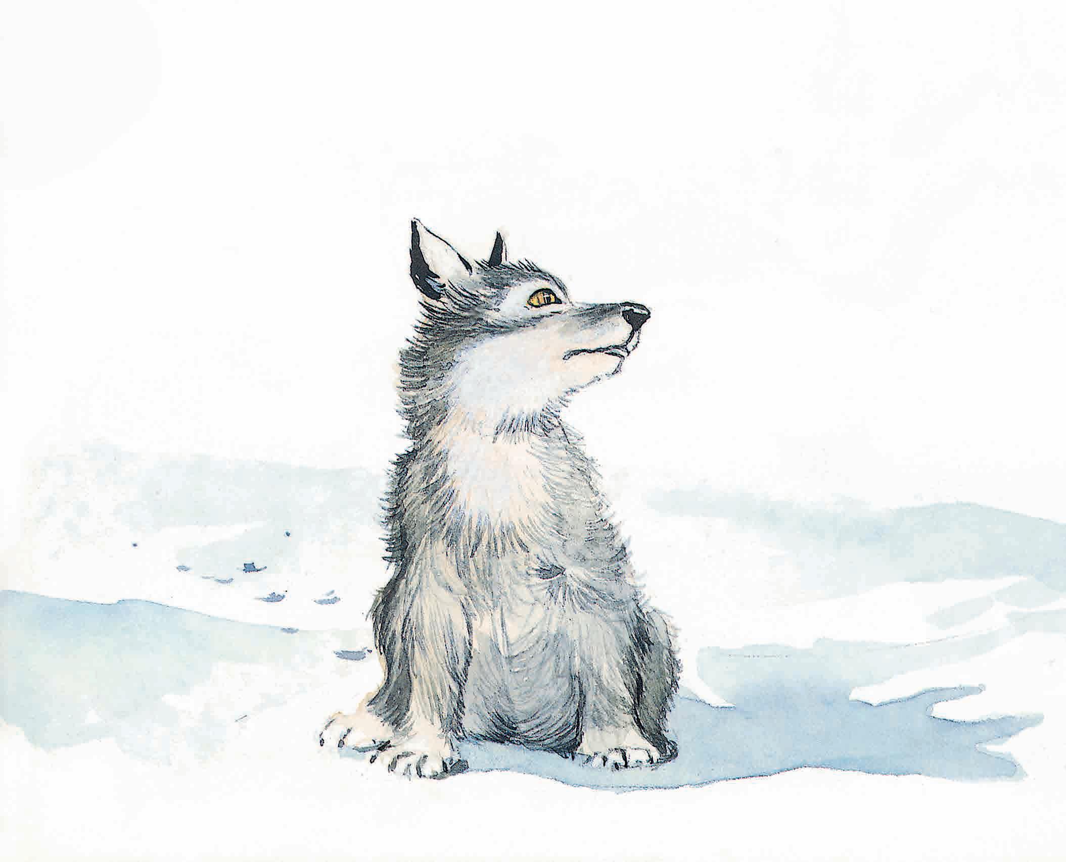 Au matin, les premiers rayons du soleil glissèrent sur la neige. Le louveteau s’éveilla, surpris. Il s’ébroua et fit jaillir des flocons blancs.