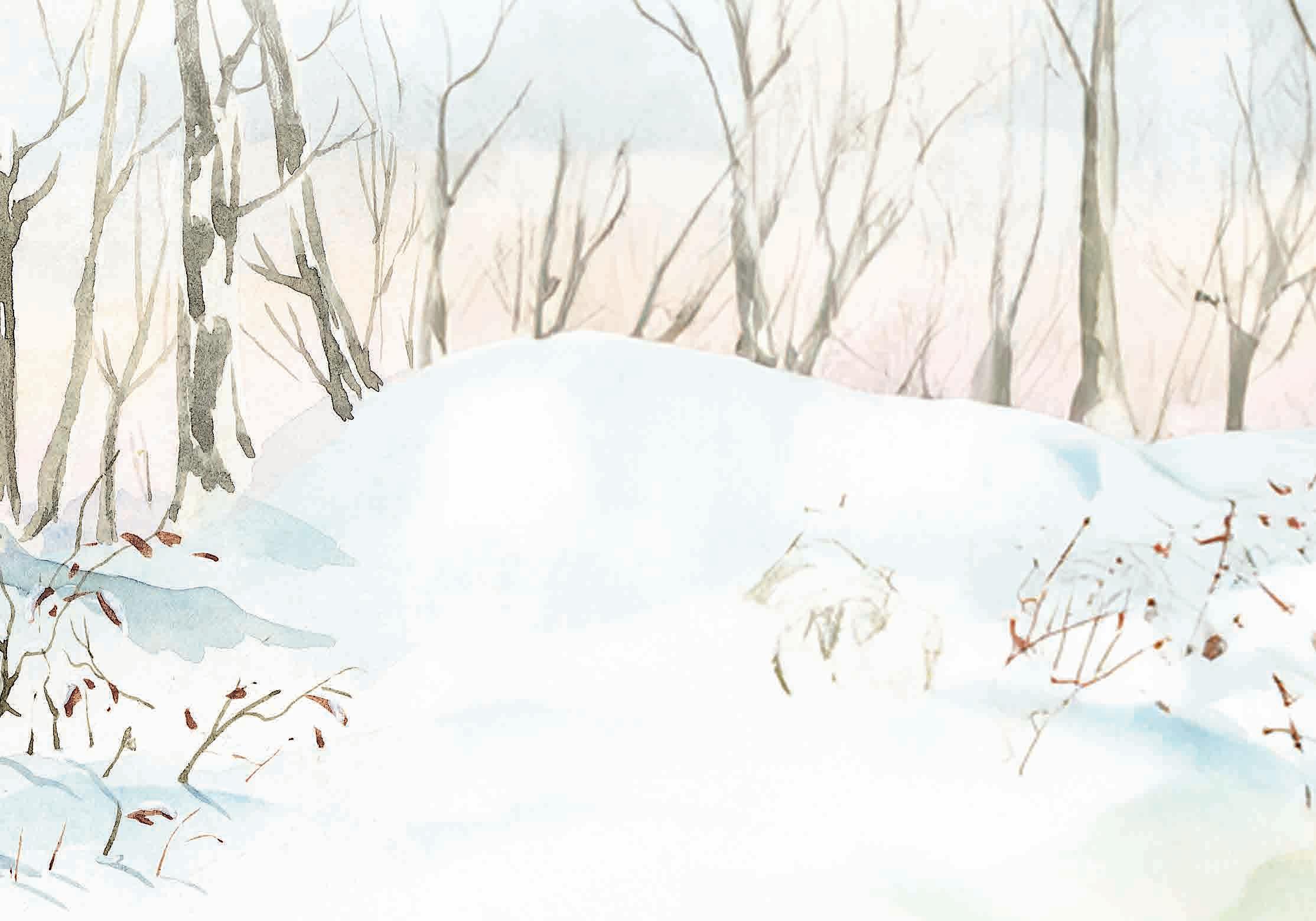Hélas, ses pattes s’enfonçaient dans la neige ; il avait bien du mal à avancer. Par moments, il piquait du museau dans une montagne de flocons, tête en bas et queue en l’air... Puis il en ressortait plein de courage et se dirigeait vers le soleil encore très pâle.