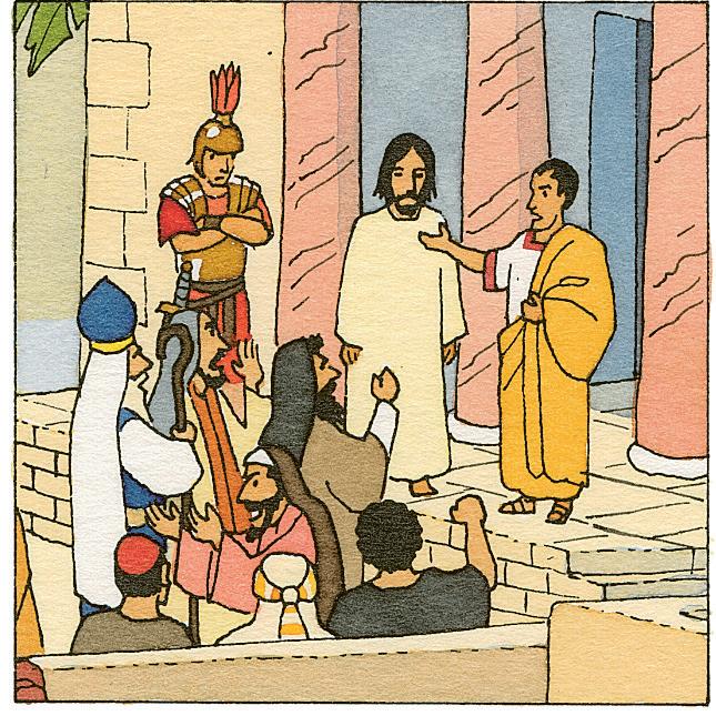 Jésus est condamné à mort chez Ponce Pilate.