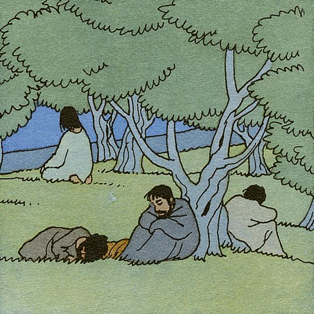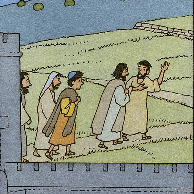 Jésus et ses amis se rendent au mont des Oliviers.