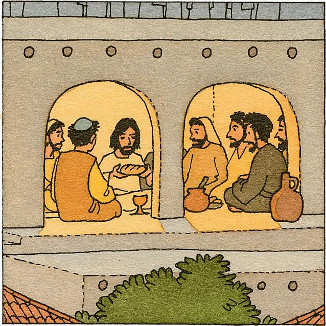 Jésus partage un dernier repas avec ses amis.