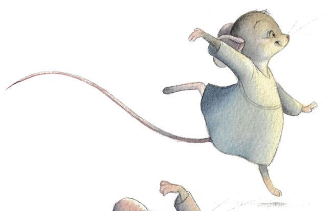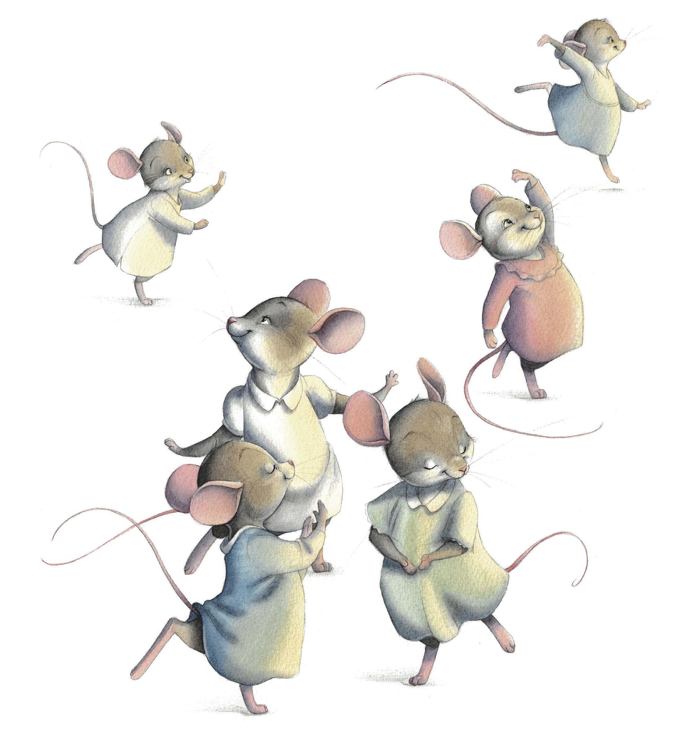 Le musicien se remet au piano et attend longtemps avant de recommencer à jouer. Puis le piano résonne à nouveau dans la bibliothèque. Derrière la porte, les deux petites souris punies tendent l’oreille. Soudain, toutes leurs amies souris sortent ensemble de leurs cachettes et se mettent à danser et à faire des pirouettes. Le chat s’arrête net :