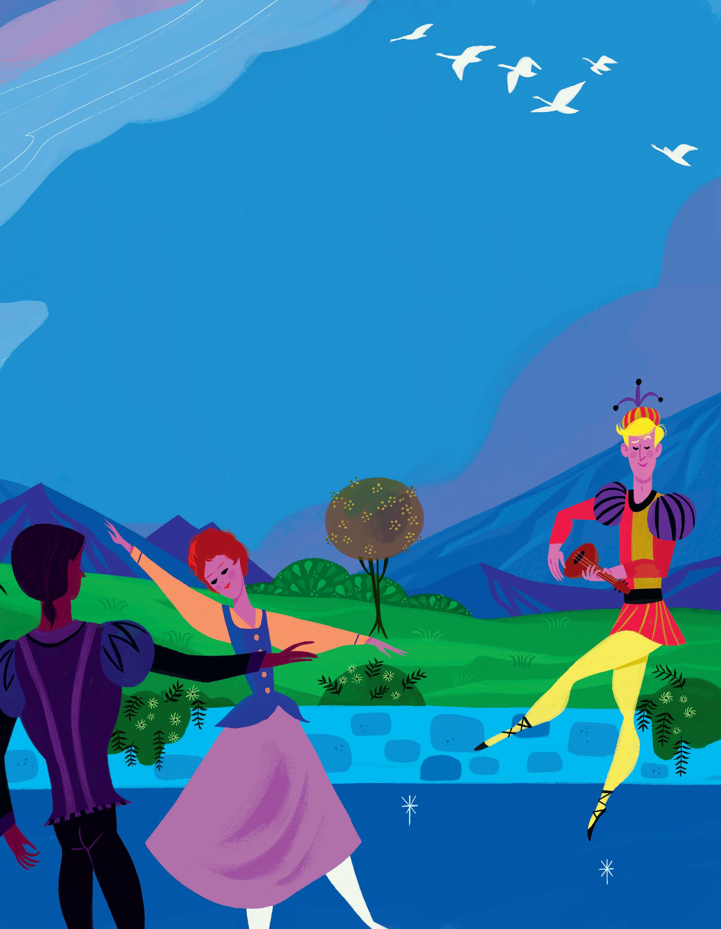 Le ballet tel que nous le connaissons aujourd’hui est né en France au XVIIIe siècle. Le vocabulaire de la danse, d’ailleurs, est français même s’il est rapidement devenu international. N’importe quelle ballerine au monde est capable de s’exécuter si un chorégraphe lui demande un pas de basque ou un entrechat quatre. C’est Jean-Georges Noverre, le maître de ballet de la reine Marie-Antoinette, qui a fixé les fondements théoriques du ballet moderne dans son livre Lettres sur la danse en 1760. C’est également en France que furent créés certains des plus célèbres ballets comme Coppélia. Cependant, à la fin du XIXe siècle, l’art du ballet s’est déplacé en Russie, à la cour du tsar. C’est là qu’ont travaillé les plus grands chorégraphes de l’histoire parmi lesquels le marseillais Marius Petipa, à l’origine de ballets immortels comme Le Lac des cygnes ou La Belle au bois dormant. C’est également grâce au russe Serge de Diaghilev, fondateur de la compagnie des Ballets russes en 1909, que l’art de la danse est revenu au centre de la culture européenne. On lui doit notamment d’avoir fait appel à de grands musiciens comme Claude Debussy ou Igor Stravinski (compositeur de L’Oiseau de feu) et d’avoir commandé des décors et des costumes à des artistes comme Pablo Picasso, Henri Matisse ou Joan MirÓ. Les illustrations de ce livre rassemblent les moments clés de six ballets qui constituent l’histoire de la danse. Ils mêlent poésie et histoire, beauté de la musique et perfection de la chorégraphie. Deux d’entre eux sont comiques