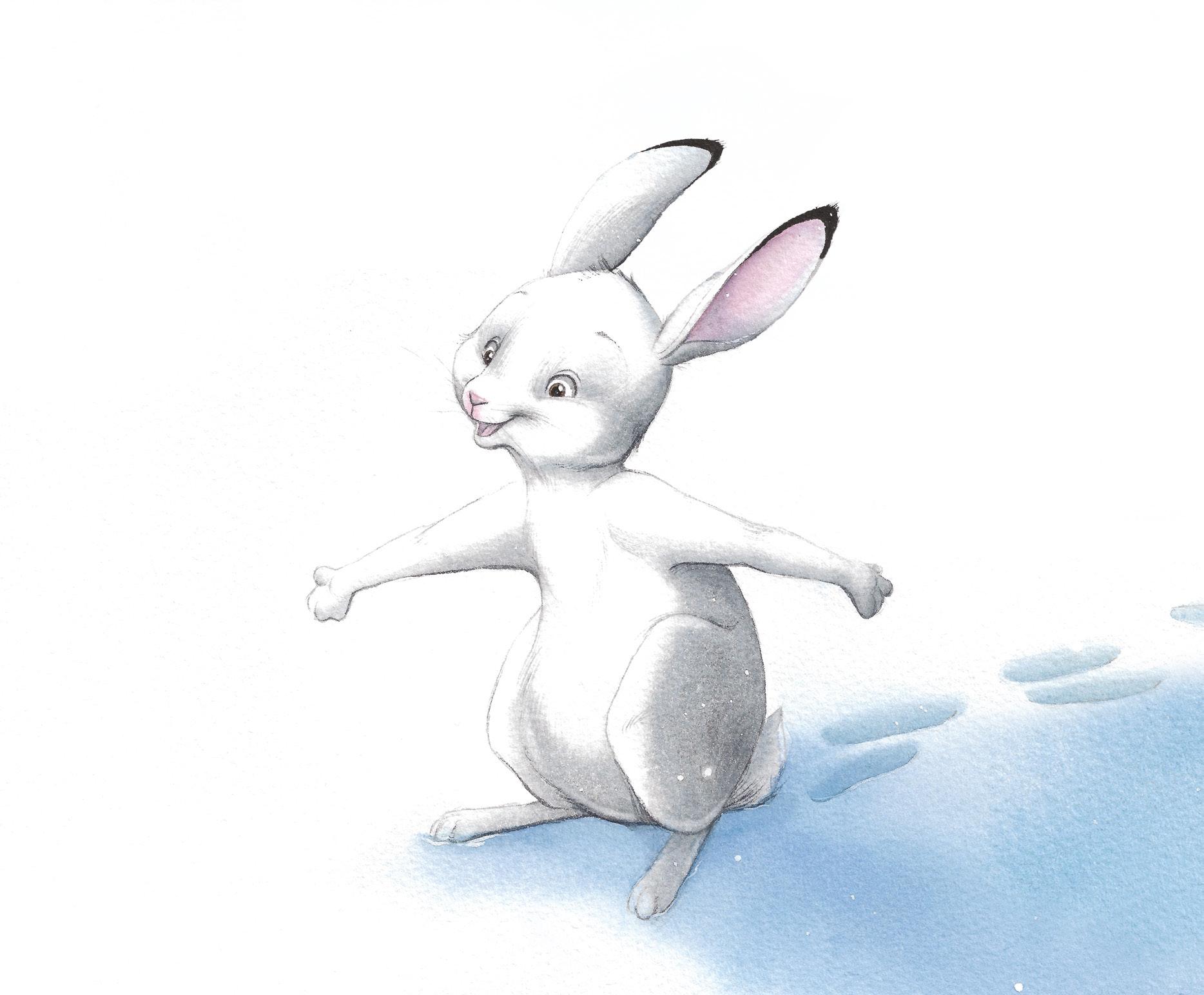 Les deux sœurs sortent du terrier et valsent au milieu des flocons. Et elles ne s’aperçoivent pas que quelqu’un est arrivé…
