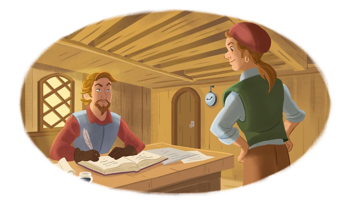 Soudain, on frappe à la porte de la cabine. Francis Drake cesse d’écrire son journal et relève brusquement la tête :