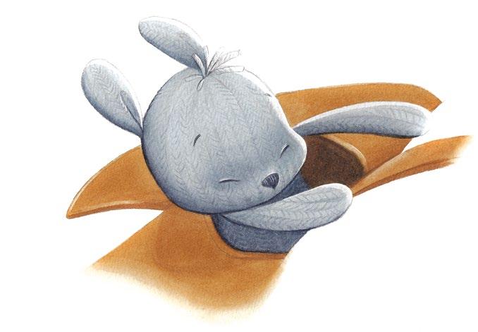 Entre deux bonds, le petit lapin met en garde son doudou, installé dans son cartable entre deux cahiers et sa carotte pour le goûter du matin.