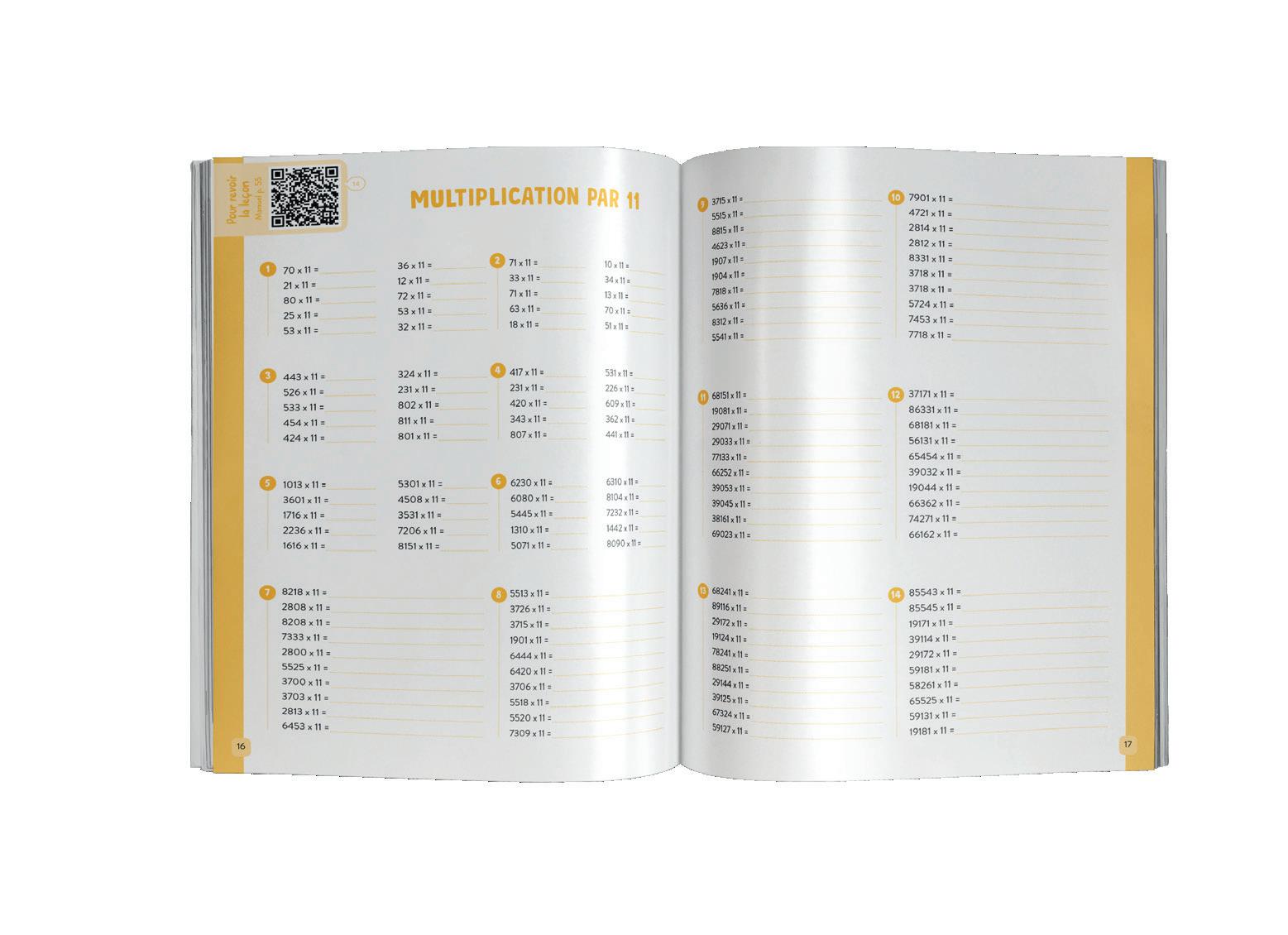 Pour chaque technique de calcul, un renvoi à la page du manuel et un QR code permettent de retrouver la leçon, ainsi que la vidéo correspondante.