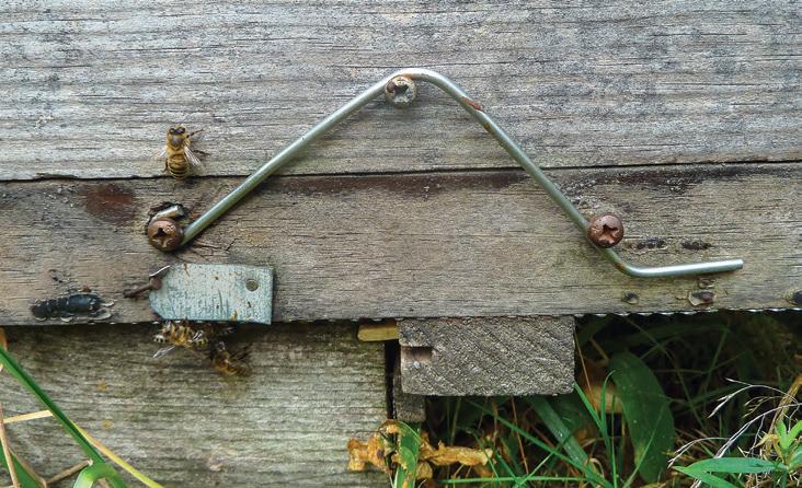 Des clous, un marteau, une scie et un mètre mesureur suffisent comme outillage. En option, vous pouvez prévoir des attaches métalliques « fixe-éléments » afin de maintenir les différentes parties entre elles, notamment le fond et le corps de la ruche. Avec trois vis partiellement enfoncées dans le bois, ces attaches font office de ressort et peuvent s’enlever d’un geste simple.