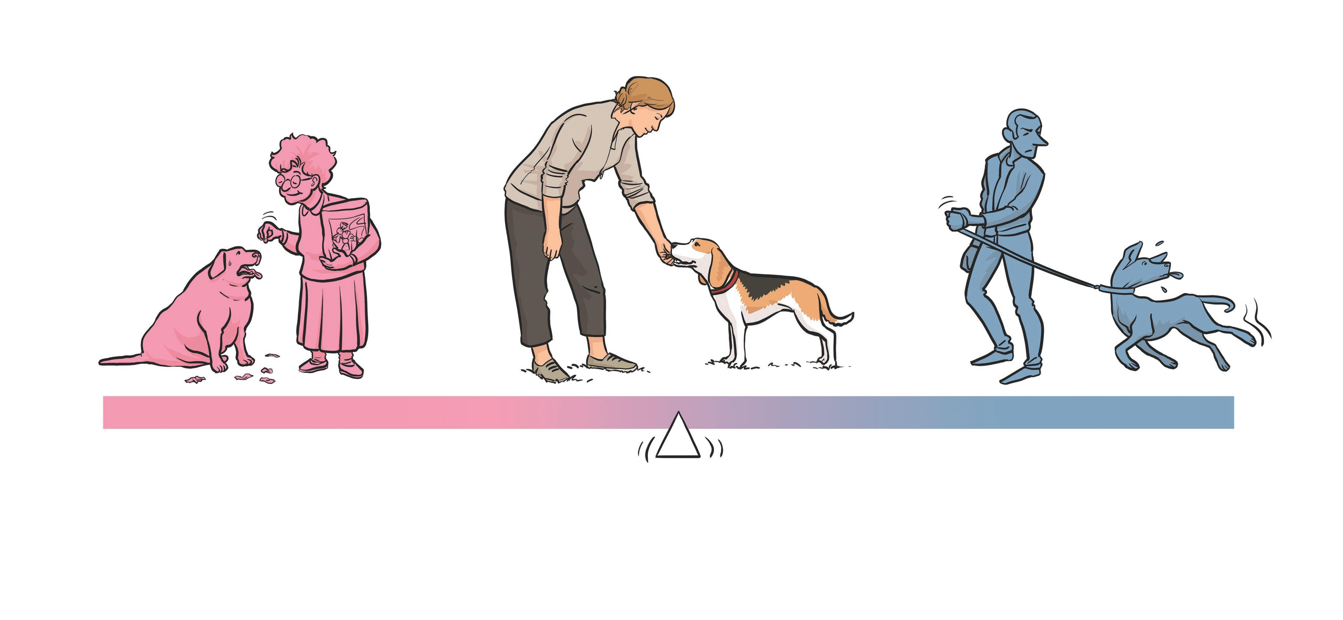 Par opposition, certains chiens au caractère sensible devront quant à eux être éduqués par le biais d’exercices « excitants » et de mise en confiance pour leur permettre de revenir à un état d’équilibre.
