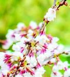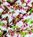 ‘Kojo-no-mai’ est un petit cerisier à fleurs du Japon qui ne dépasse pas 3 m. Ses petites fleurs roses en boutons apparaissent le long de ses curieux rameaux en zigzag dès février, voire dès janvier dans le sud du pays. En s’épanouissant, elles prennent l’aspect de délicates clochettes pendantes dont la couleur rose pâle presque blanche évoque des reflets de lumière sur l’eau. C’est en tout cas ce que pensent les Japonais, qui lui ont donné ce curieux nom qui signifie « Danse sur le lac ».