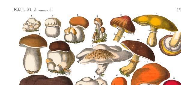 La collybie à pied velouté (Flammulina velutipes) pousse en touffes sur les souches d’arbre. Résistante au gel grâce au mucilage qui lui confère un aspect visqueux, on la reconnaît à son chapeau