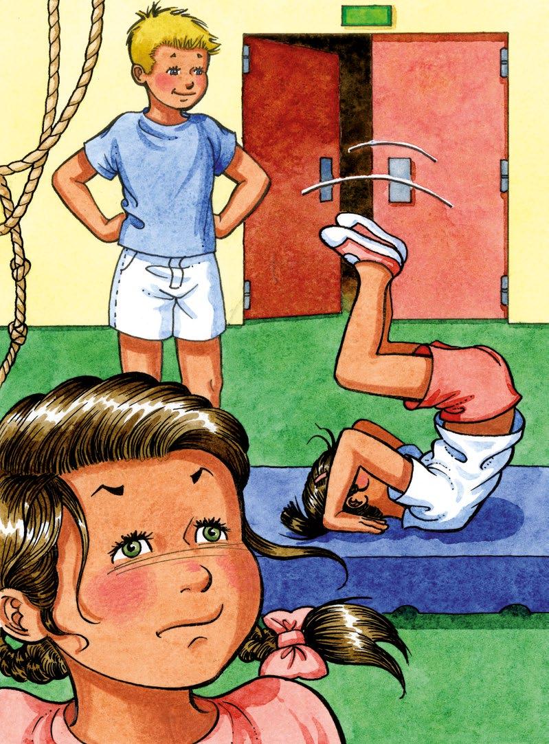 – Oui, bravo ! reprend Madame Baptiste à son tour. Superbe galipette, c’est comme ça qu’il faut faire, ajoute la maîtresse pour ses autres élèves.