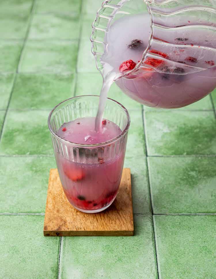 Ajoutez directement les fruits rouges surgelés, qui serviront de glaçons naturels.
