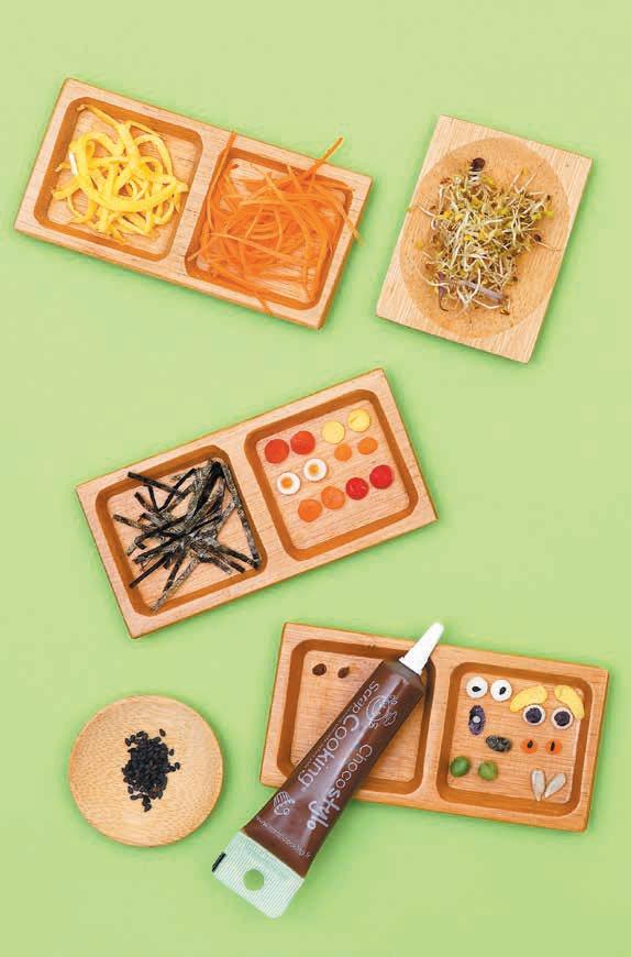 Les yeux : chocolat, graines de sésame, nori, fromage, petits pois, carotte, graines de tournesol…
