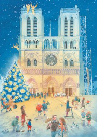 Chaque jour jusqu’à Noël, ouvrez les 25 fenêtres sur la façade et sur le parvis de la cathédrale, et prenez part à la joie de NotreDame de Paris à nouveau accessible. Ainsi se révèlent ainsi des anges, de grandes figures de l’histoire (Victor Hugo, le roi Saint Louis), des saints du temps de l’Avent (Saint Nicolas, Sainte Lucie), des clins d’œil humoristiques (Quasimodo, une nuée de pigeons, un enfant grimpé en haut du sapin) ancrés dans une vraie ambiance de Noël.