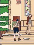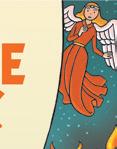 Le petit ange à la trompette, pressé de jouer de son instrument, est enfi n autorisé à sonner la gloire de Dieu et entraîne les Mages vers le lieu de la naissance de Jésus. Une belle reprise de la tradition des anges musiciens.