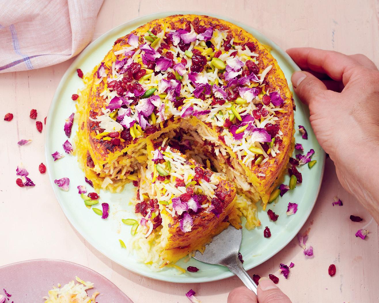 Le morasä polo, surnommé le riz « bijou » en Iran, est un plat de fête somptueux, originaire des régions centrales comme Ispahan et Téhéran, mais que l’on retrouve lors des grandes occasions dans tout le pays. Ce plat doit son nom et son éclat à sa décoration luxuriante faite de fruits secs, d’oranges confites, de pistaches et d’amandes colorées, évoquant un tapis persan ou un bijou scintillant. Traditionnellement servi lors des mariages, des grandes réceptions ou pendant Nowruz (le Nouvel An iranien), le morasä polo est un symbole de richesse, de bonheur et de prospérité. Je prépare beaucoup ce plat pour mes invités et à chaque fois, c’est un succès et un délice !