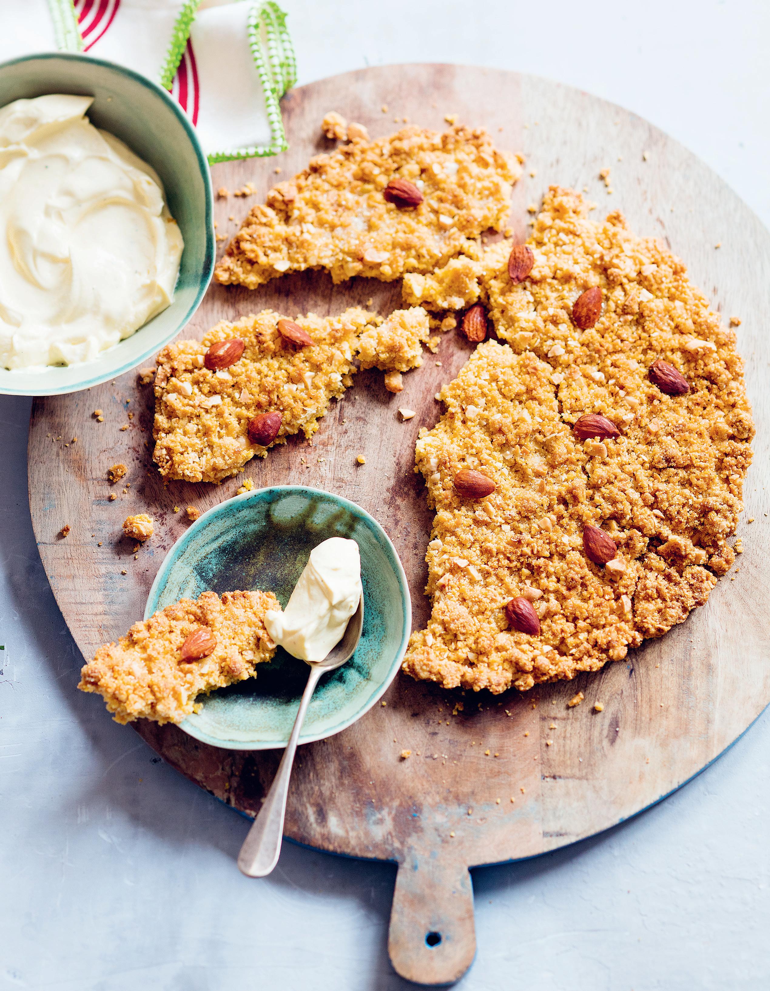 SABLÉS AUX AMANDES, SEMOULE DE MAÏS ET CRÈME AU MASCARPONE