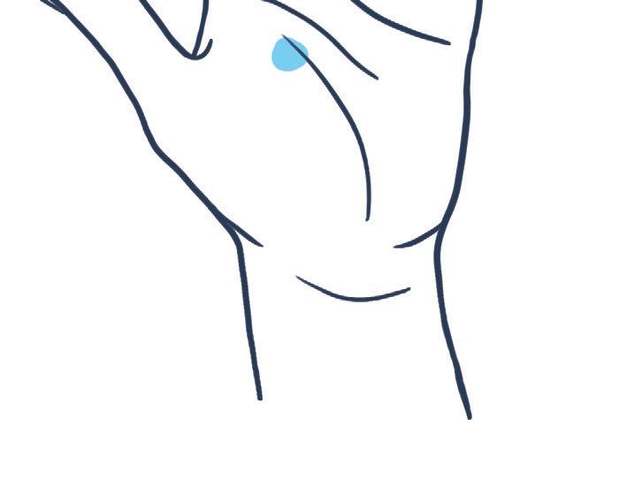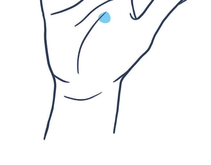 Pendant une minute et avec vos deux mains, massez fermement le crâne en effectuant des petits mouvements circulaires sur l’ensemble du cuir chevelu Pour apporter une grande détente tout en rentrant en contact avec l’énergie du receveur, l’objectif est de décoller doucement la peau du crâne Ensuite, avec votre pouce, effectuez trois pressions (comme si vous appuyiez sur un bouton) sur le point du plexus solaire en synchronisant votre mouvement avec la respiration du receveur