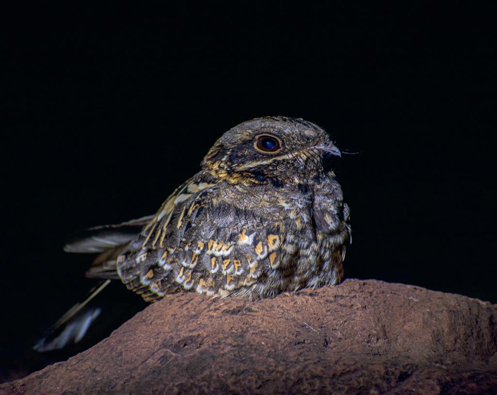 Pourtant, petit miracle de la nature et de l’improvisation, le lever du jour va me réserver une belle surprise. Dans la nuit, le vent faiblit, la forêt se met tout doucement à murmurer. Le chant des grillons devient plus clair et précis ; la route lointaine gronde comme un torrent ; un ronronnement surgit en plusieurs points. C’est le chant d’un Engoulevent à collier roux (Caprimulgus ruficollis), le proche parent de notre Engoulevent d’Europe (Caprimulgus europaeus).