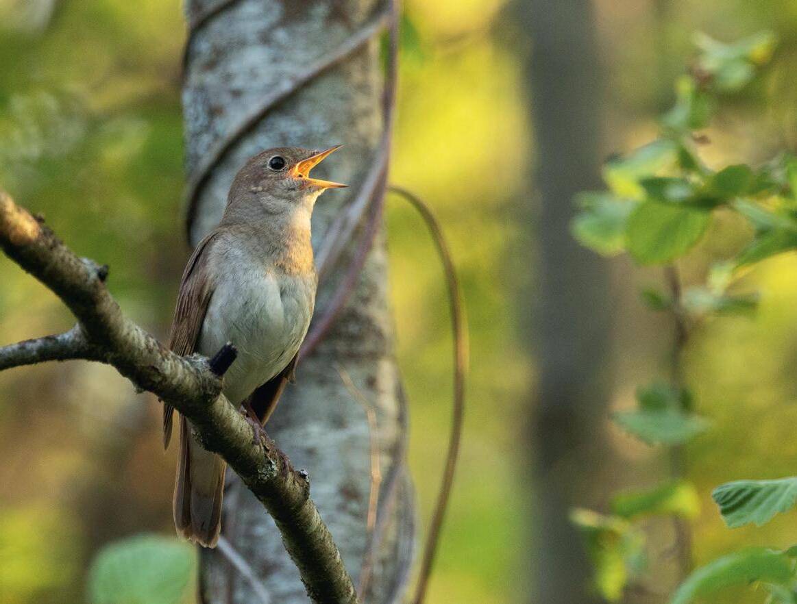 ci-contre l’autre rossignol d’Europe, celui de l’Est, le Rossignol progné en plein chant.